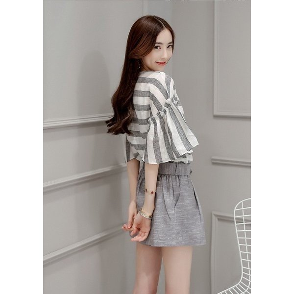 セットアップ レディース カジュアル KL 五分袖 春 夏 2点セット ストライプ 上下セット tシャツ+パンツ レディース パン