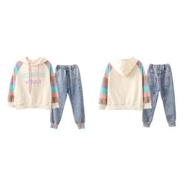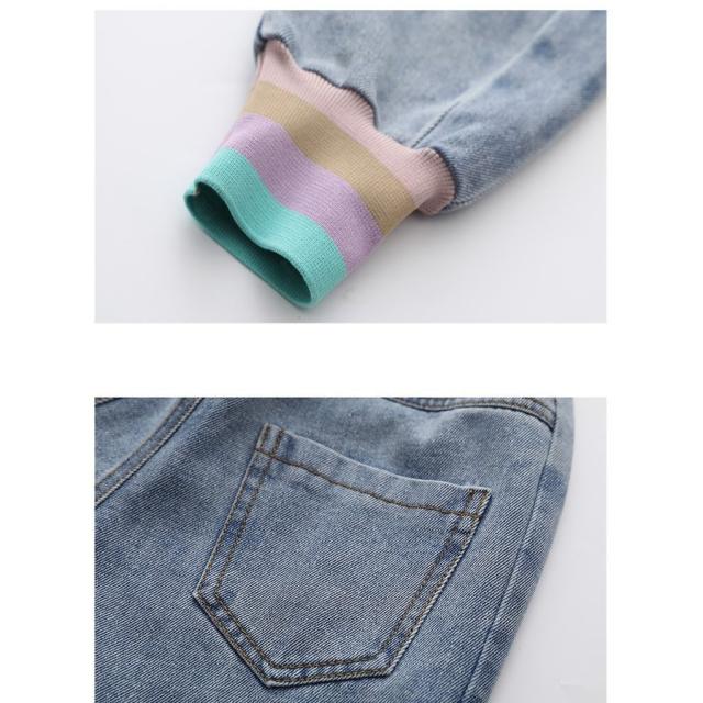 子供服 セットアップ キッズ 女の子 春秋 長袖 2点セット 上下セット Tシャツ デニムパンツ ロングパンツ ジュニア おしゃれ カジュアル 可愛い 新品 150 160cm