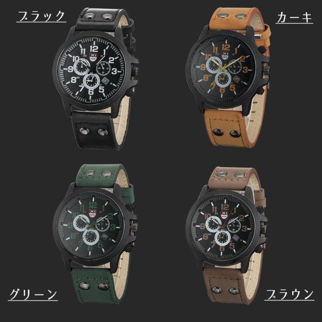 腕時計 アナログ ラウンドウォッチ フェイクレザーベルト シンプル メンズ 文字盤 カジュアル おしゃれ かっこいい カッコイイ 男性用 紳士用 クオ