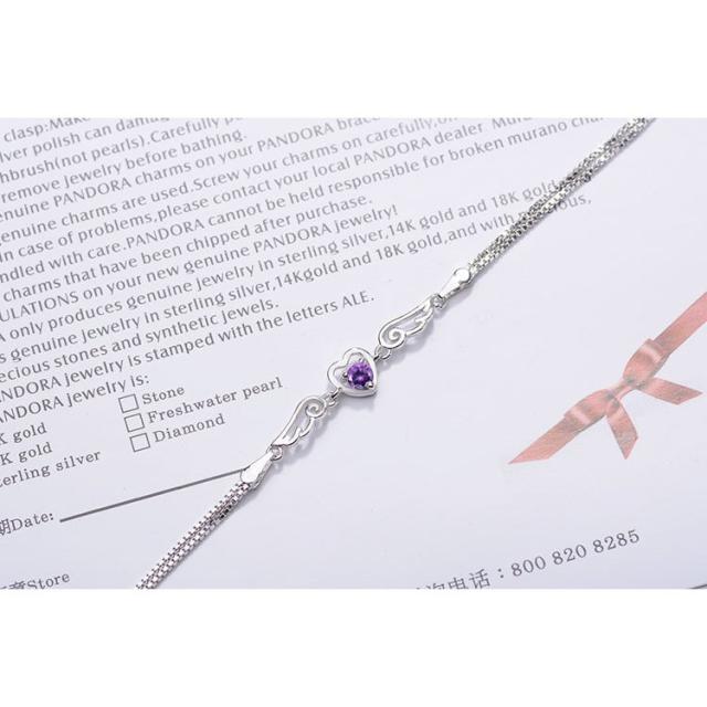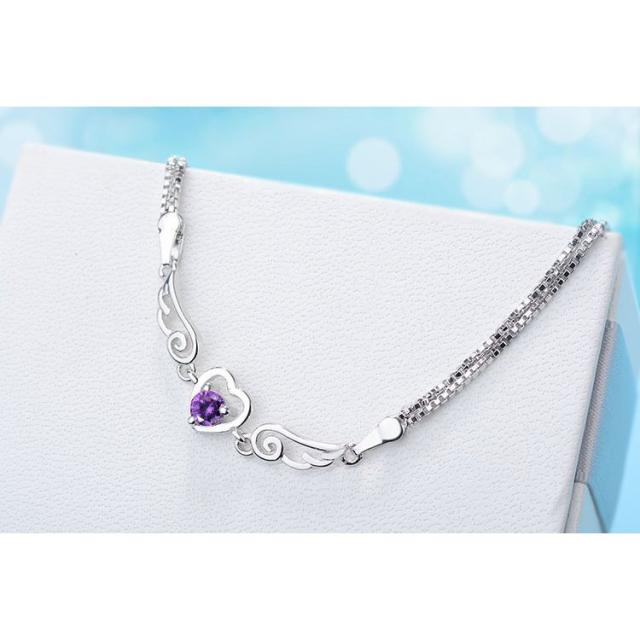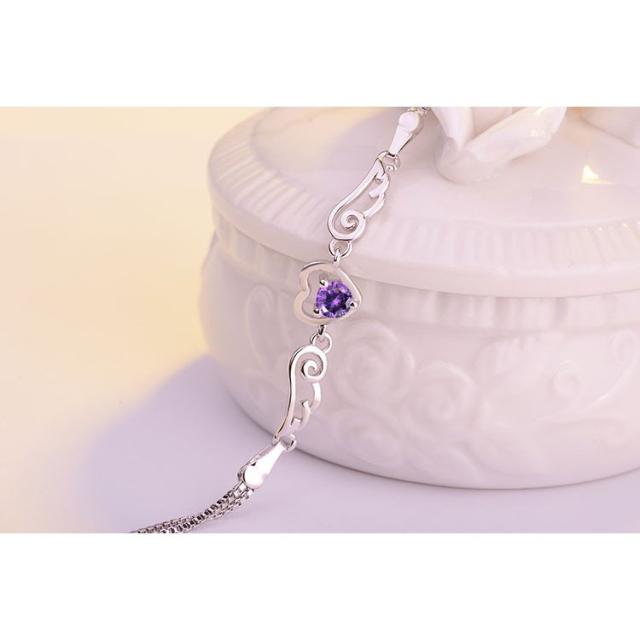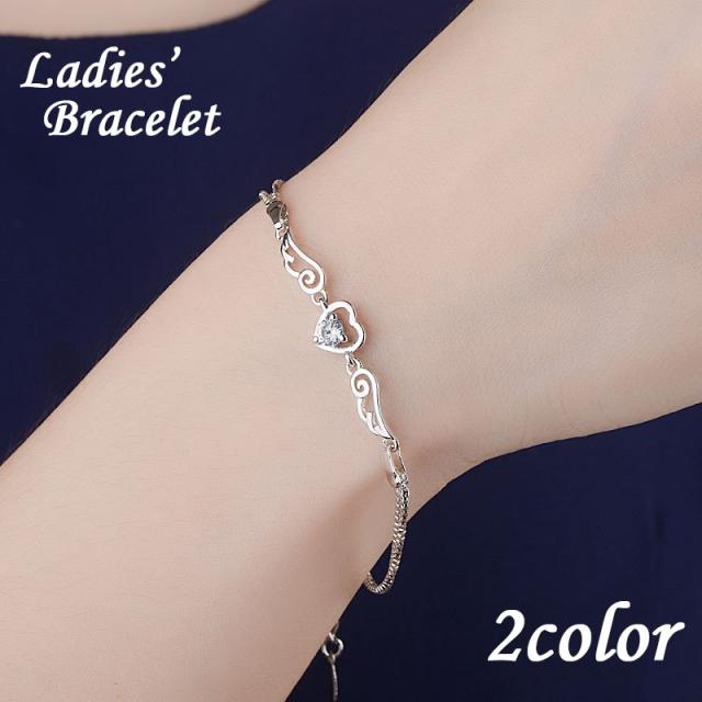 ブレスレット 腕輪 レディース アクセサリー ラインストーン ハート 天使の羽根 エンジェル 細め 細身 華奢 大人上品 おしゃれ かわいい フェミニ