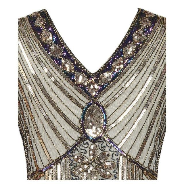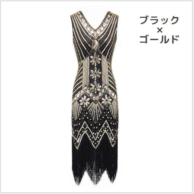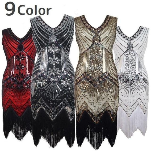 パーティードレス イブニングドレス ノースリーブ Vネック レディース スリムワンピース タイト スレンダー スパンコール タッセル フリンジ キラキ