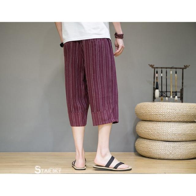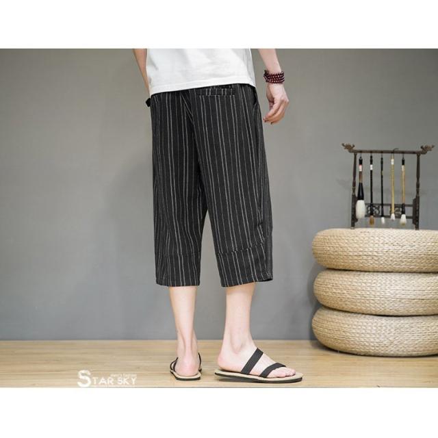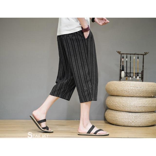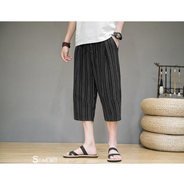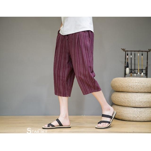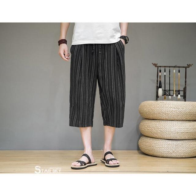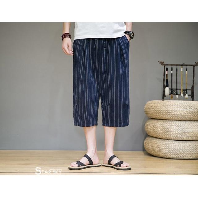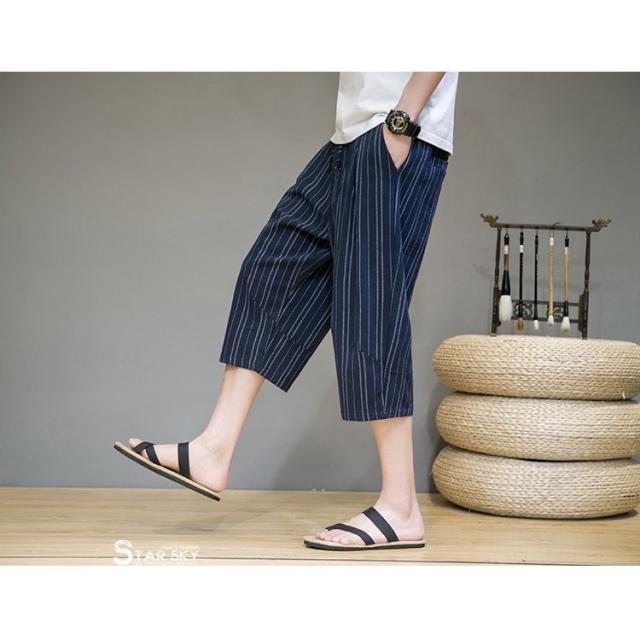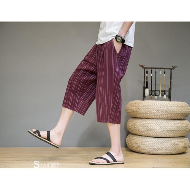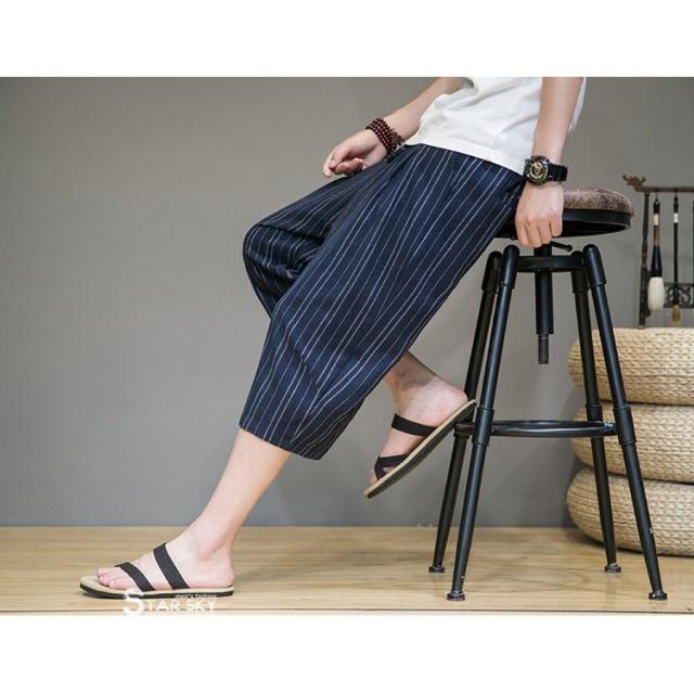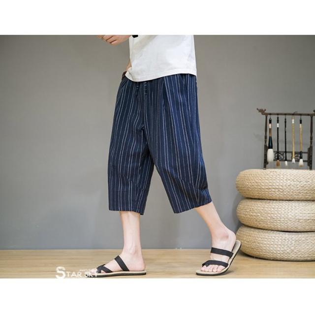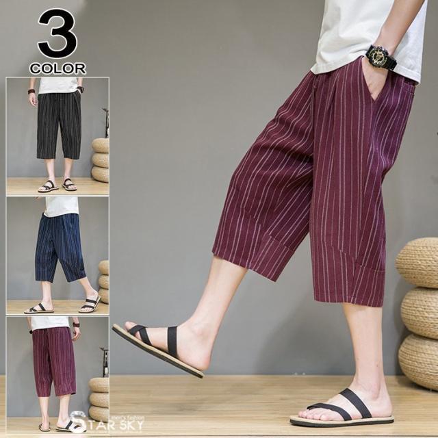 サルエルパンツ メンズ メンズファッション 麻パンツ リネンパンツ 七分丈ズボン ワイドパンツ ストライプ ゆったり 夏ズボン