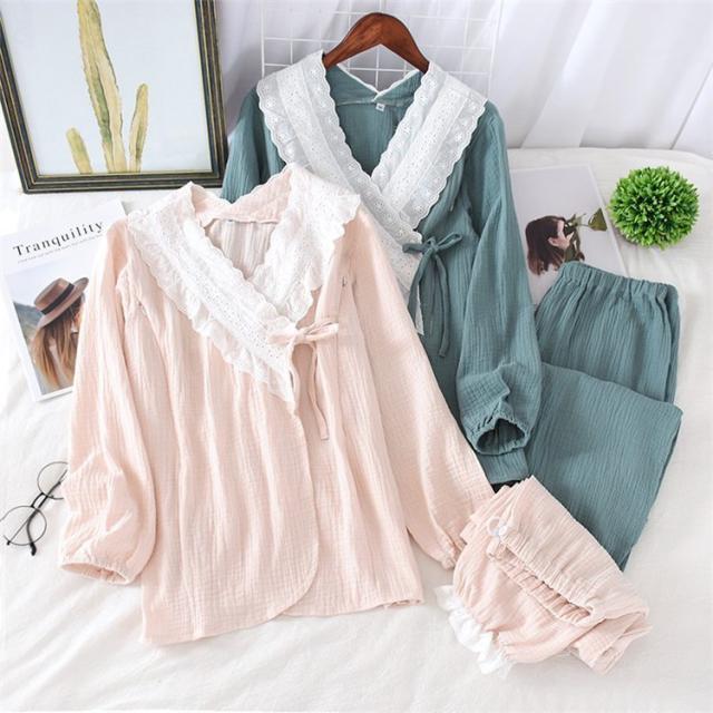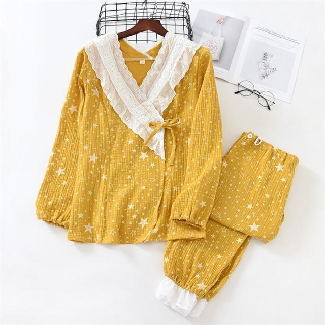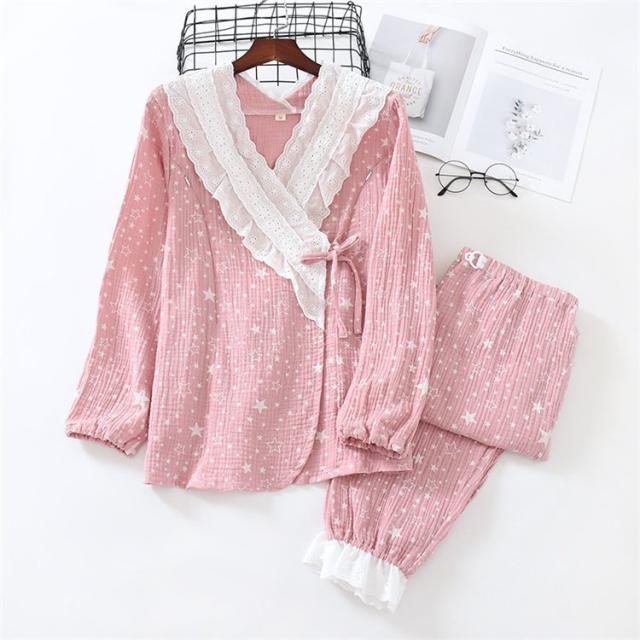 ガーゼ パジャマ レディース 前開き 動物柄 春秋用 和風 長袖/母の日ギフトにも/“ノビィ”ストレッチ2重ガーゼ/大きいサイズ&小さいサイズも