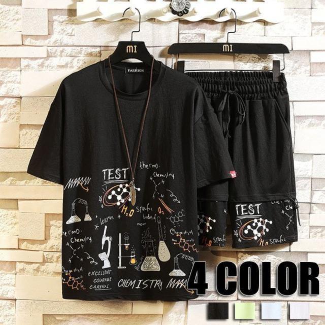 セットアップ 上下セット メンズ Tシャツ トップス ハーフパンツ セットアップ 丸首 スポーツ ルームウェア 春 夏 セットアップ 上下 4色