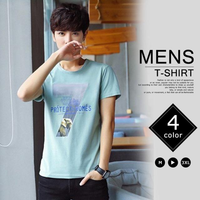 半袖Tシャツ メンズ ロングTシャツ プリントTシャツ クルーネックトップス 文字 ファッション カットソー