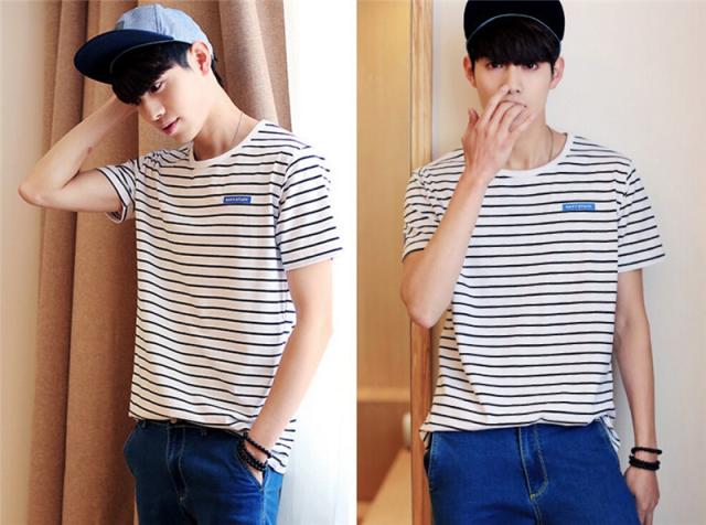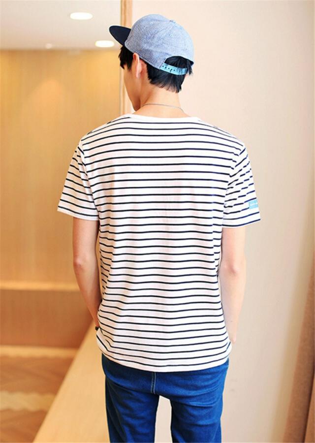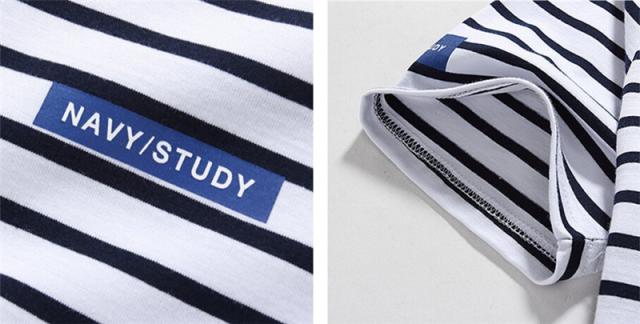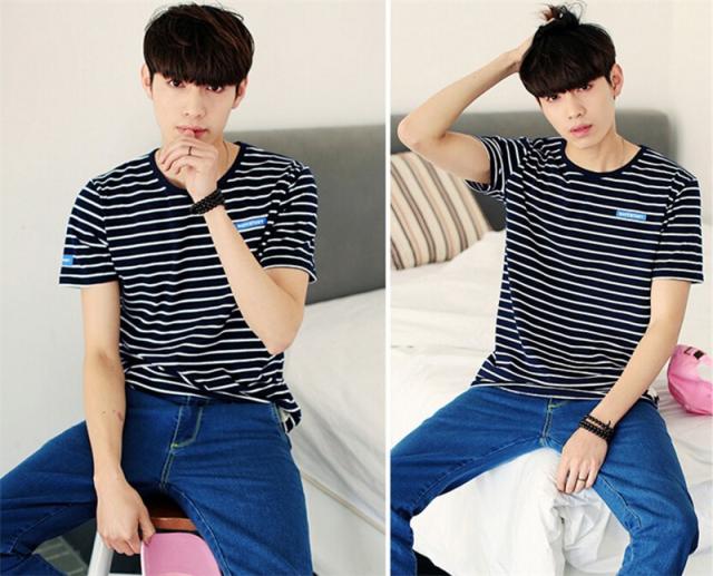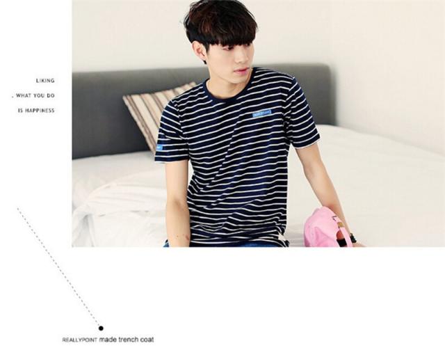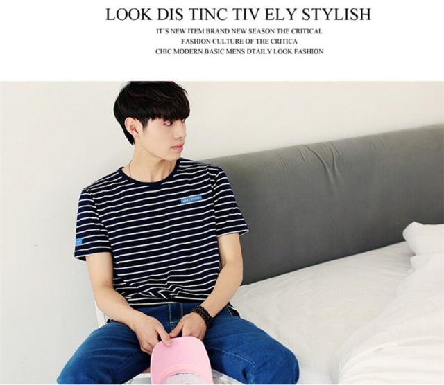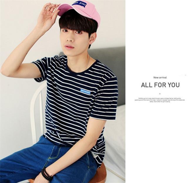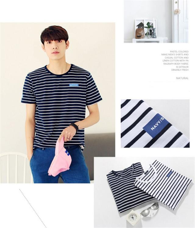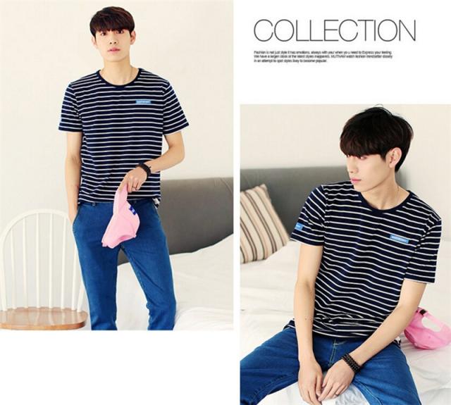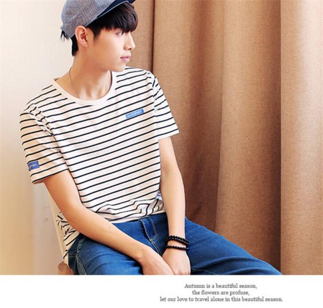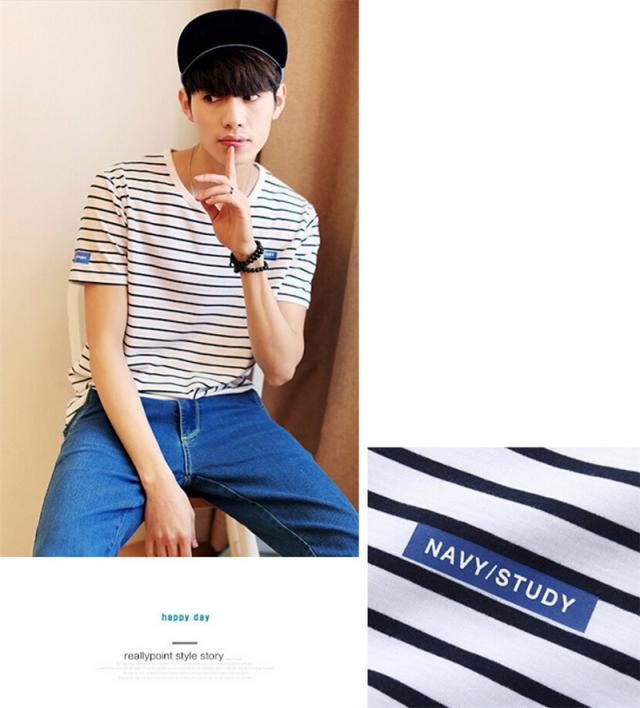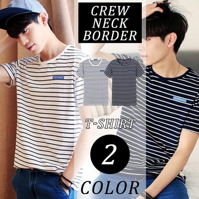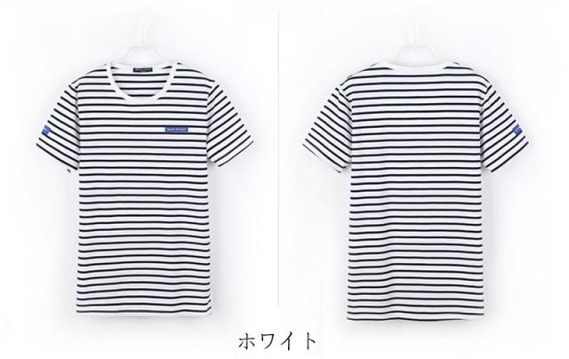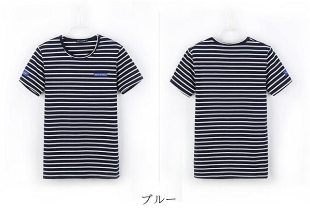Tシャツ メンズ 半袖 ストライプ クルーネック ロングTシャツ シンプル ストレッチ トップス 2カラー