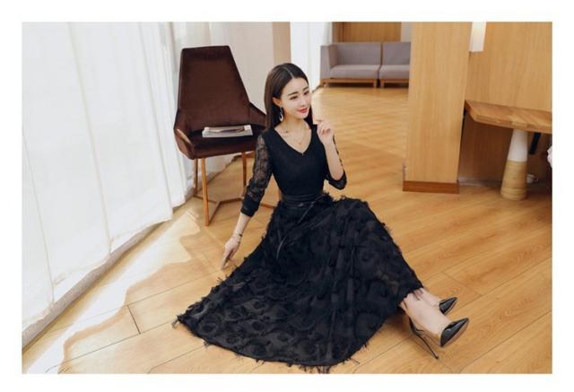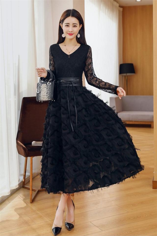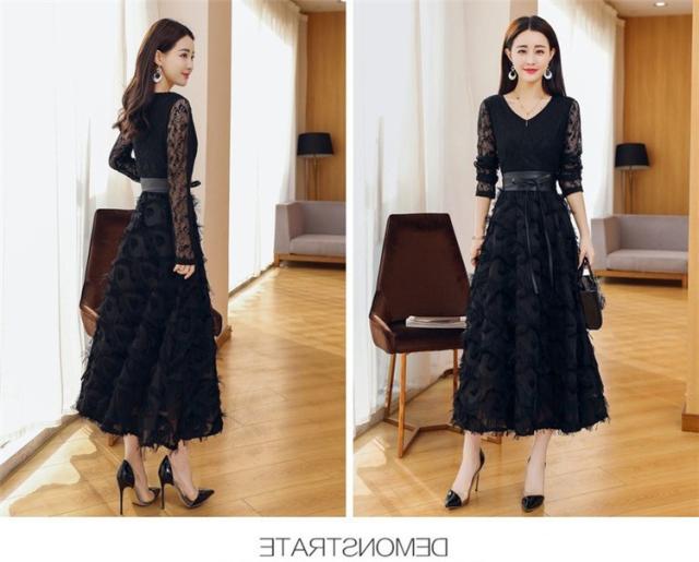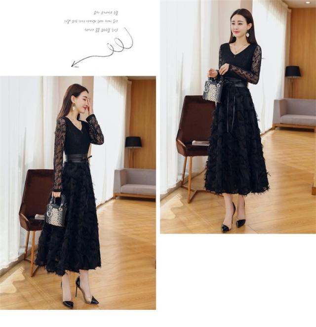 マキシワンピース レディース ロング マキシ丈 レース チュール 着痩せ Aライン リゾート 黒 Aライン 長袖 ワンピ きれいめ 無地 40代