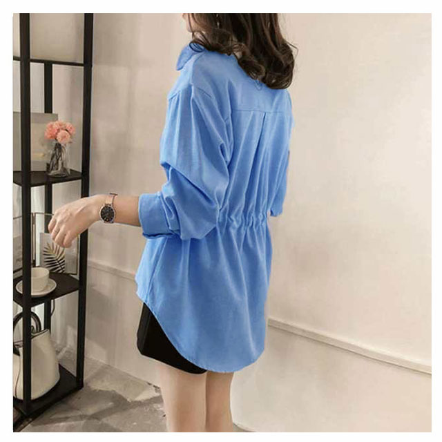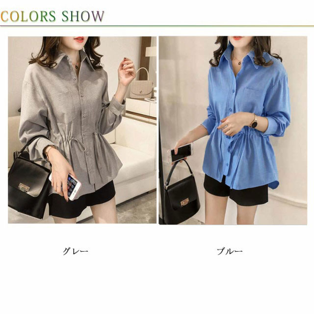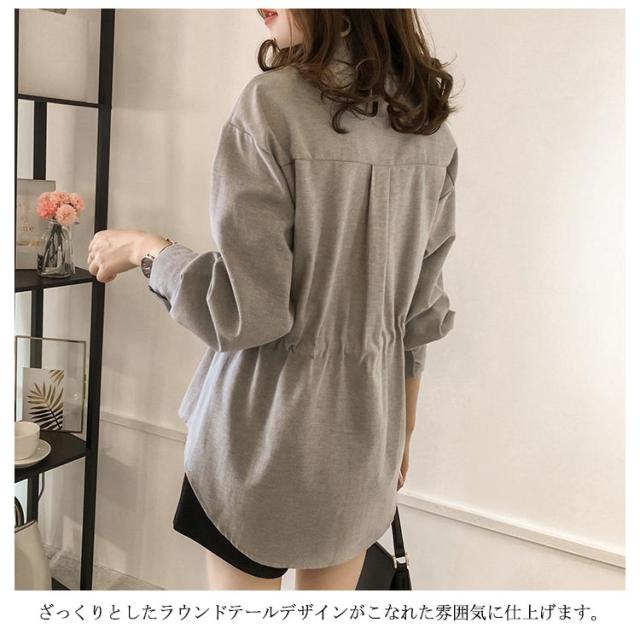 (送料無料)リボン ブラウス トップス レディース シャツ チュニックシャツ 長袖 無地 ウエストマーク ウエストリボン ギャザー入り ラウンドテール 前後差 大きいサイズ ゆったり 大人カジュアル かわいい フェミニン きれいめ