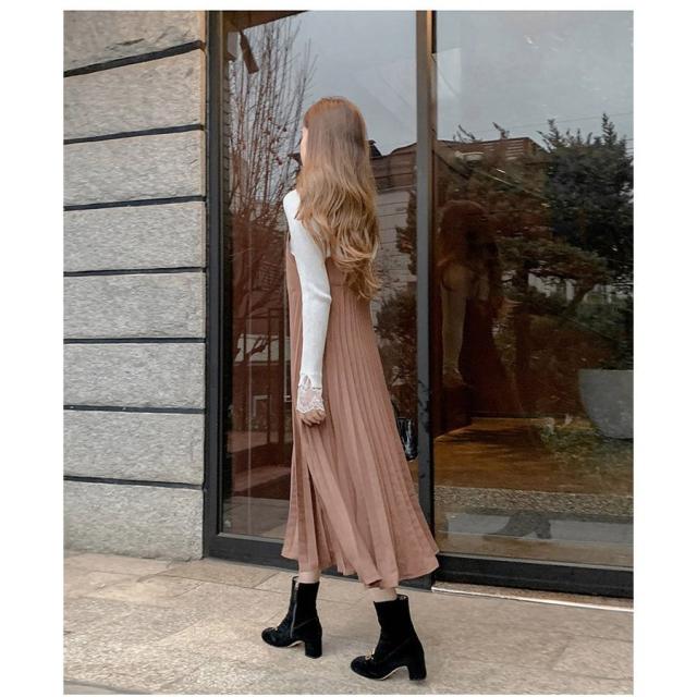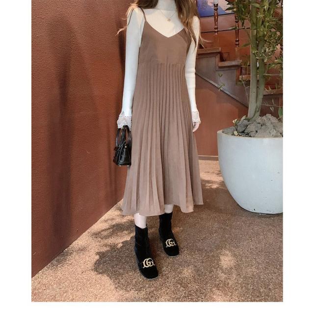 ワンピース レディース 40代ワンピース 秋冬新作 キャミワンピース きれいめ ワンピース プリーツスカート キャミソール オシャレ 通勤 お出かけ 大人