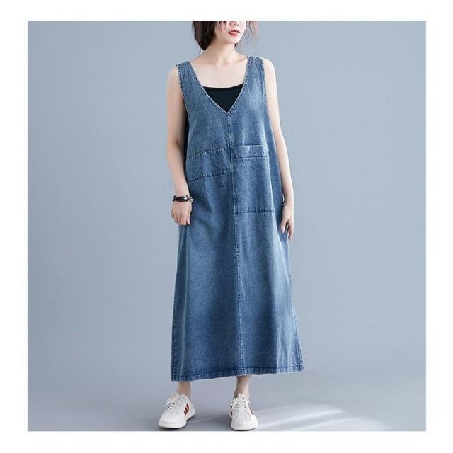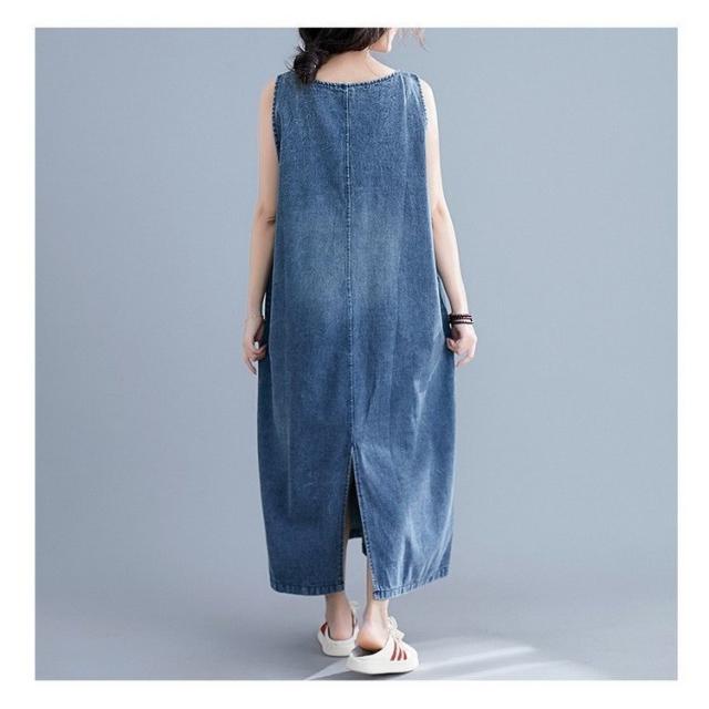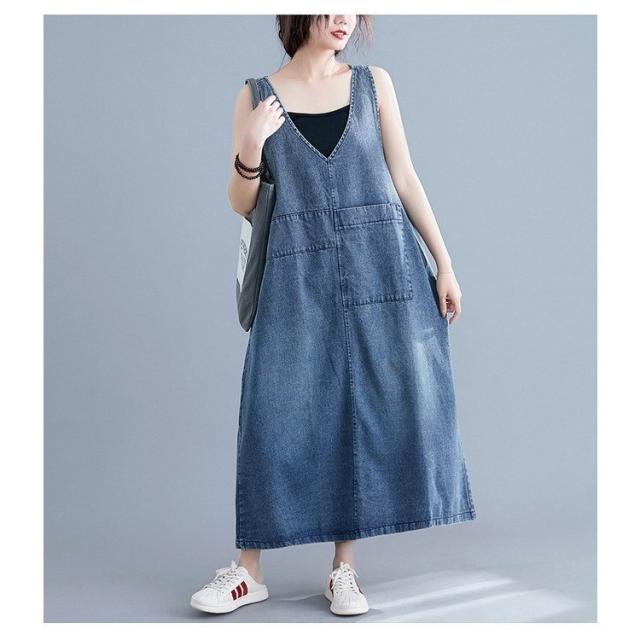 デニム サロペットスカート レディース マキシ丈 ジャンパースカート デニム 40代 50代 60代 デニムワンピース オールインワン デニム ロング丈 体型カバー