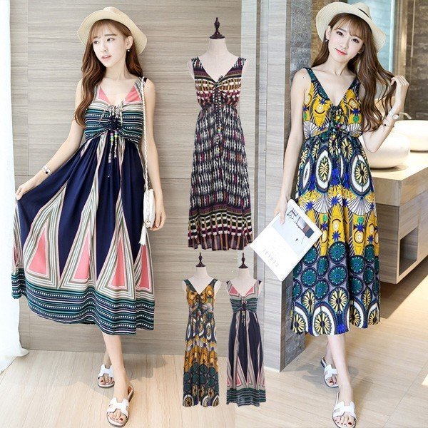 海 ビーチ Aライン ボヘマキシワンピース全3色