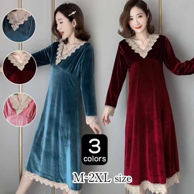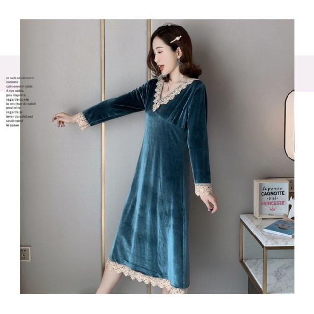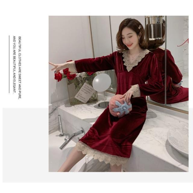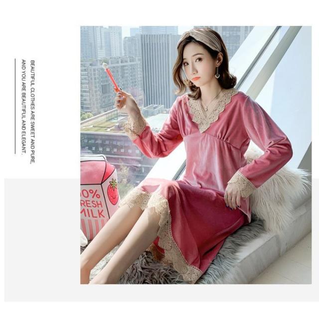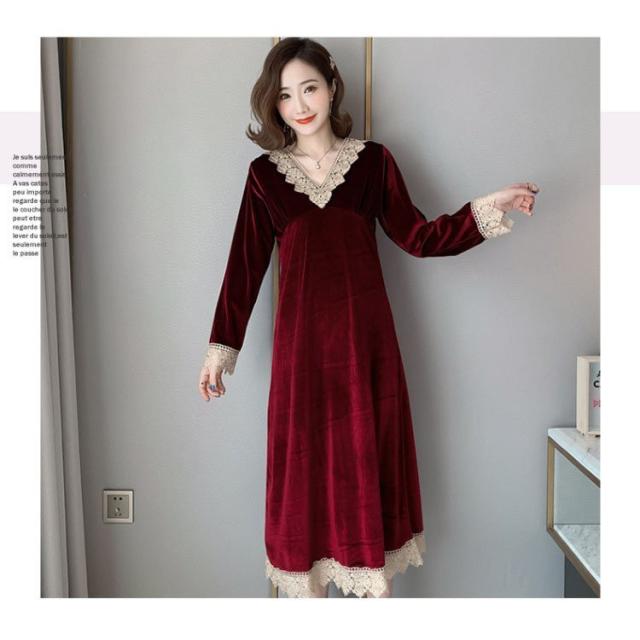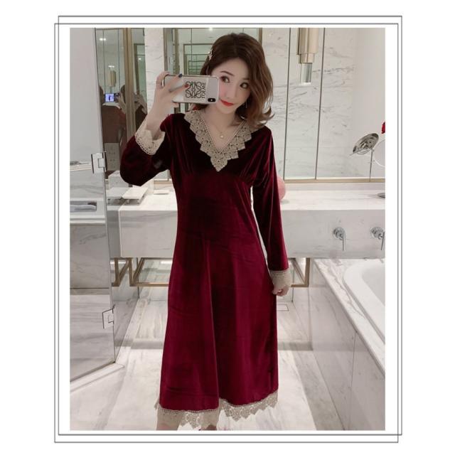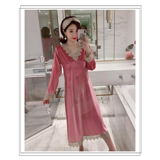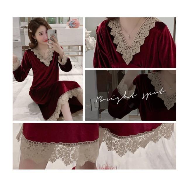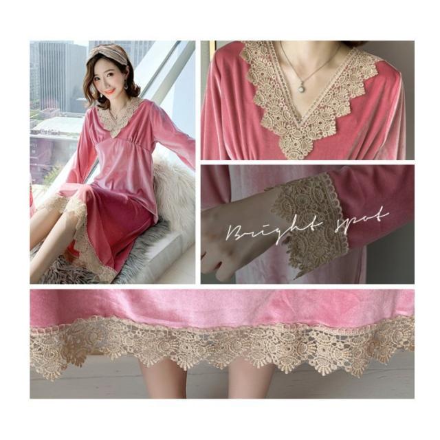 パジャマ レディース ルームウェア 冬 綿 大きいサイズ 長袖 レース 暖かい ナイトロープ 厚手 韓国風 寝巻き 部屋着 ワンピースタイプ 可愛い