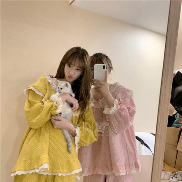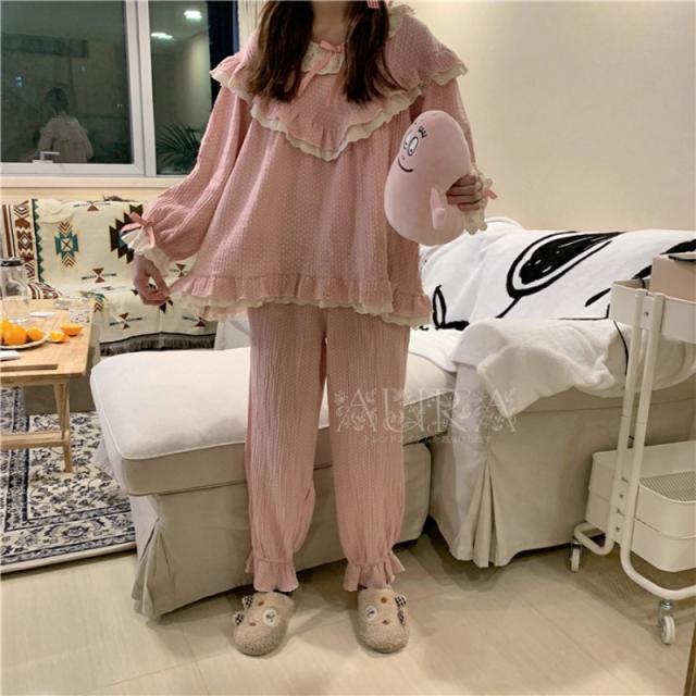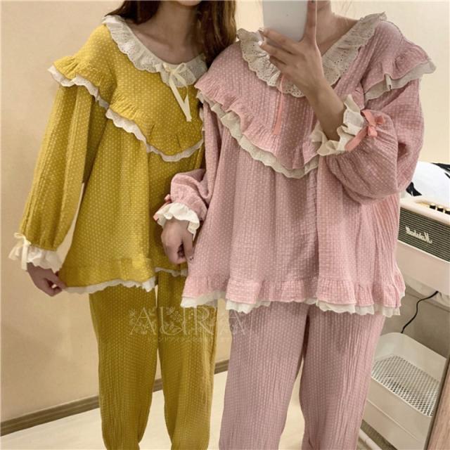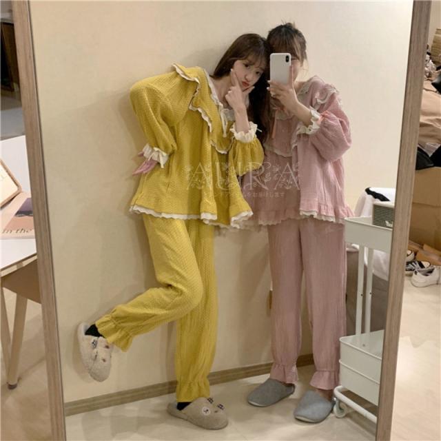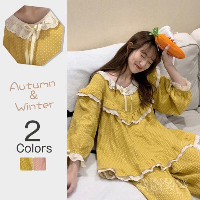 パジャマ ルームウェア レディース 春夏秋冬 前開き セットアップ パジャマ可愛い 長袖 ルームウェア 女性 部屋着 寝巻き 新作 2色