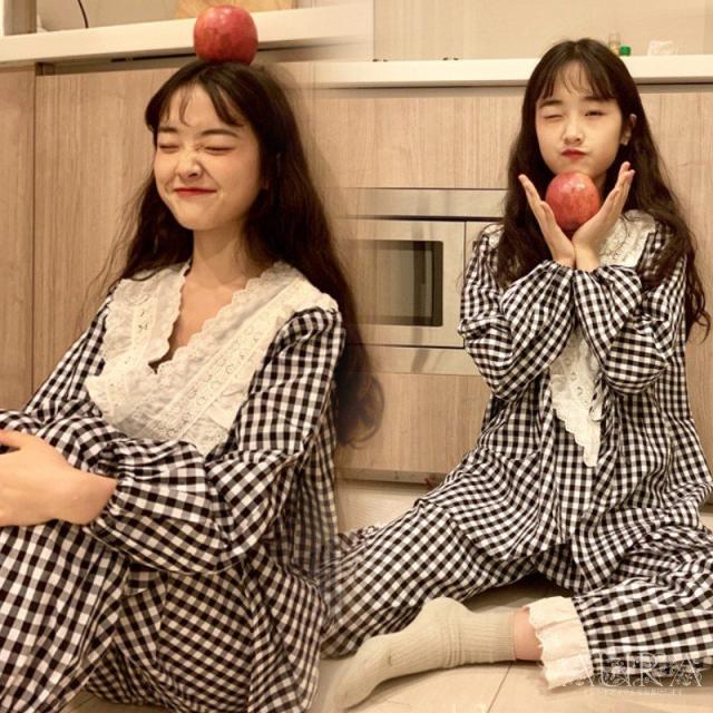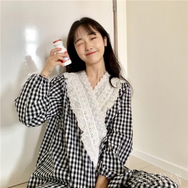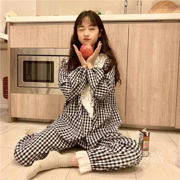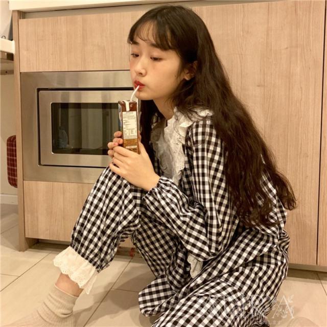 パジャマ レディース 春秋 ルームウェア 長袖 ロングパンツ パジャマ 寝巻き チェック柄 2点セット パジャマ 部屋着 可愛い お揃い 新作