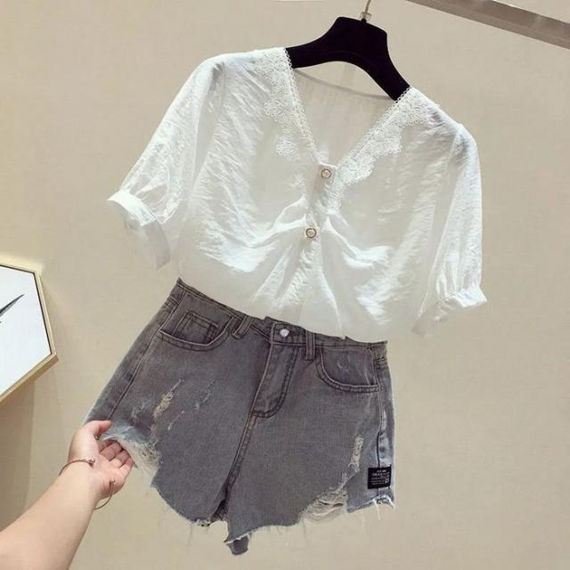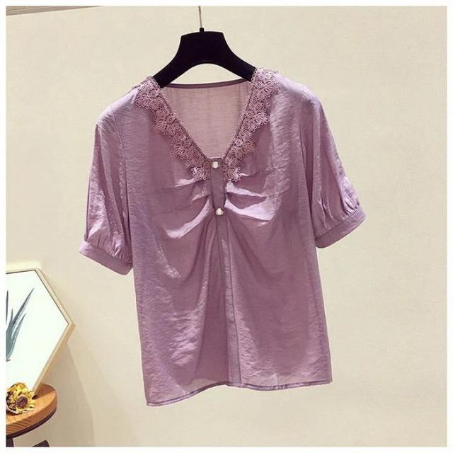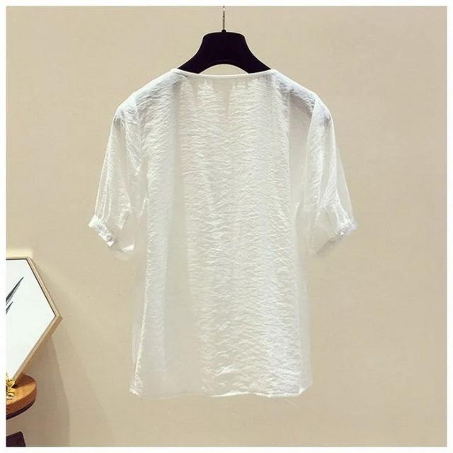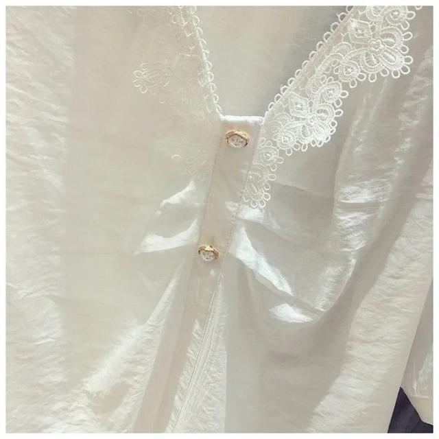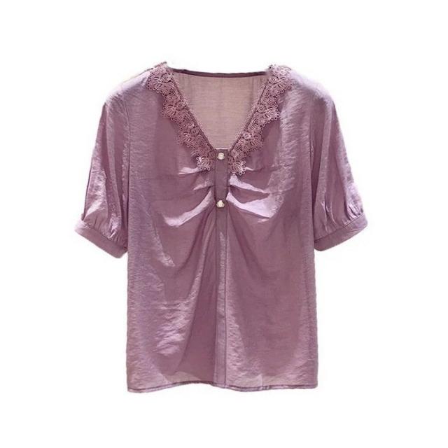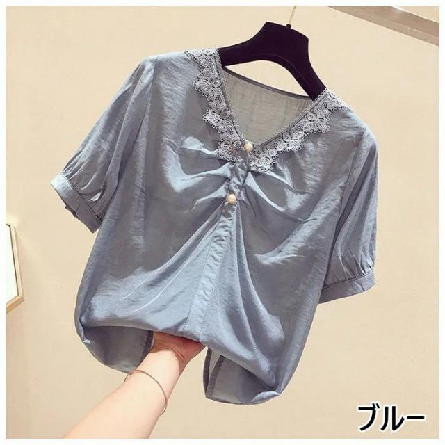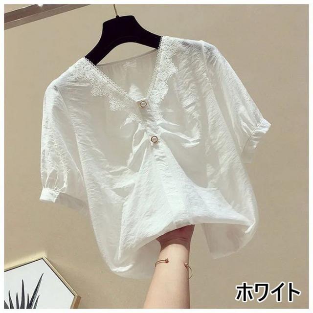 ブラウス レディース 40代 春夏 オシャレブラウス 白シフォンブラウス レースVネック パフスリーブブラウス 半袖トップス おしゃれ上品 大人 通勤OL ゆったり