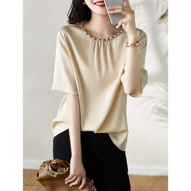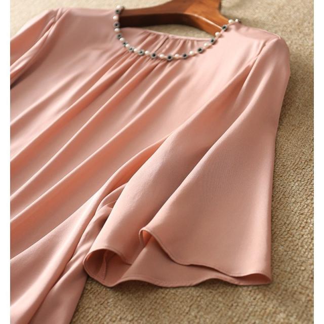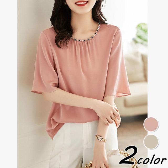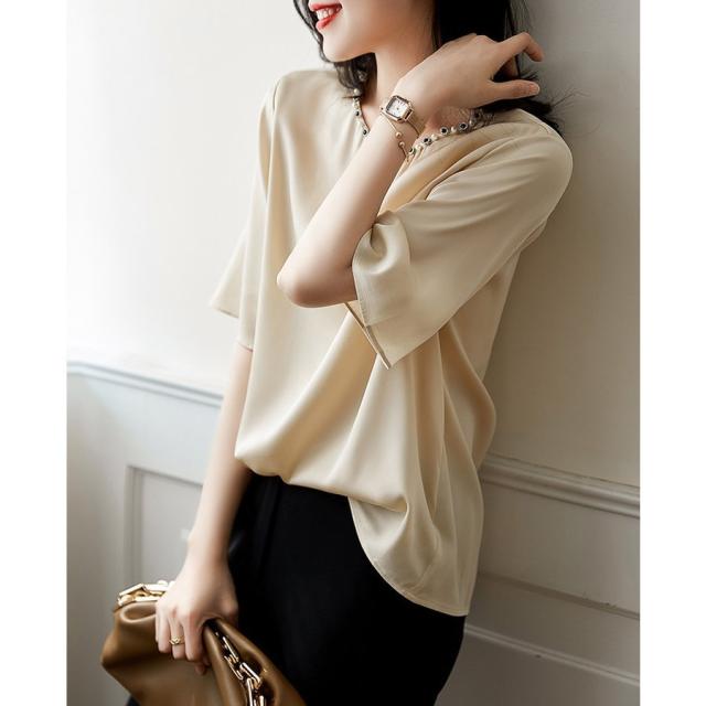 ブラウス レディース 40代 春夏新作 オシャレブラウス シフォンシャツ 半袖トップス 無地フレアブラウス 大人 通勤 ゆったりシャツ 韓国風 30代 50代