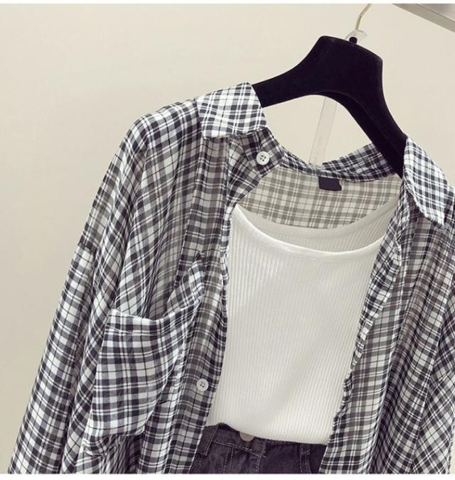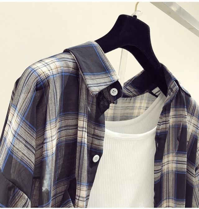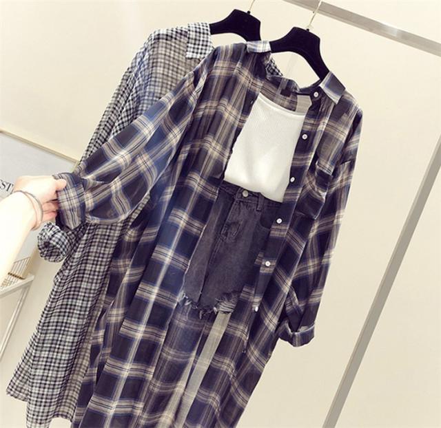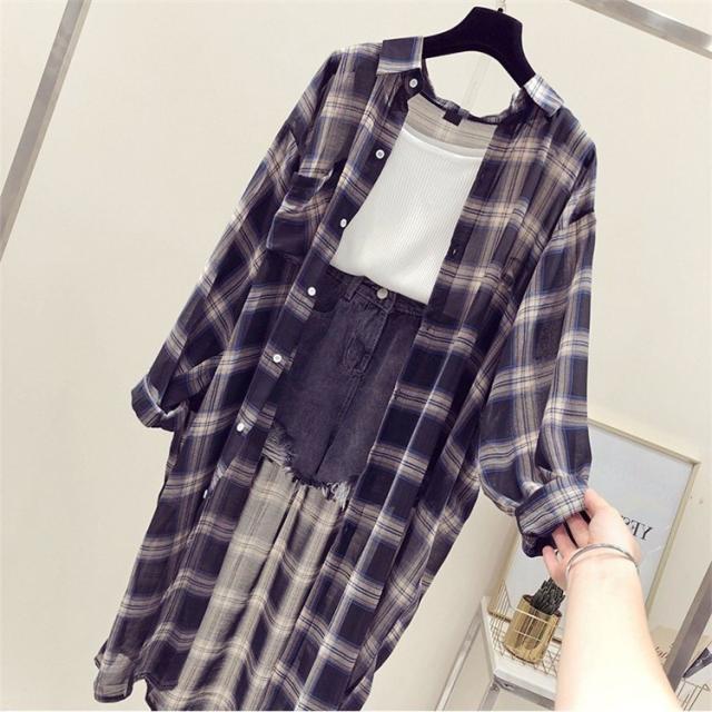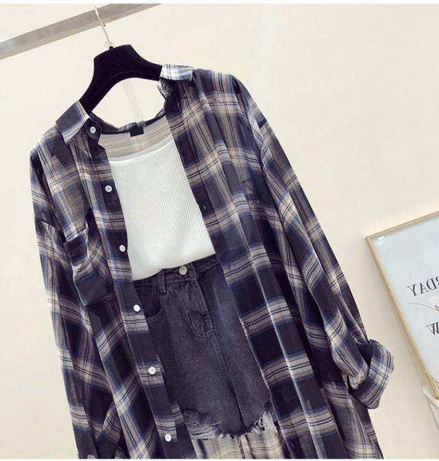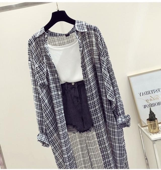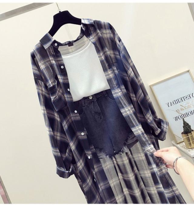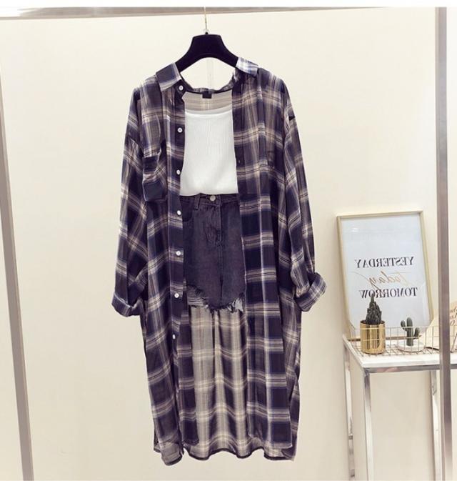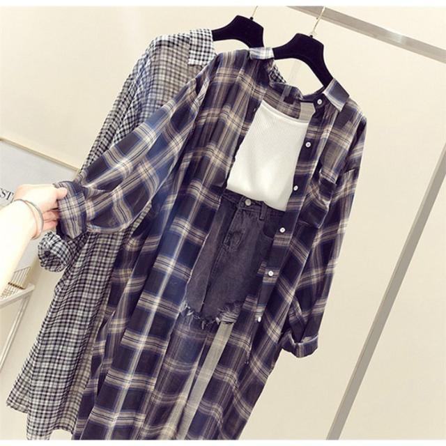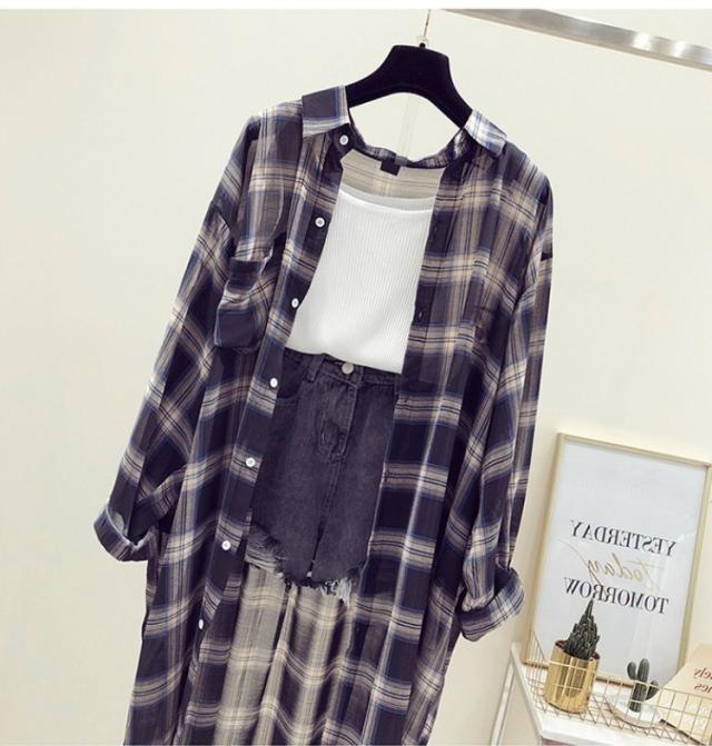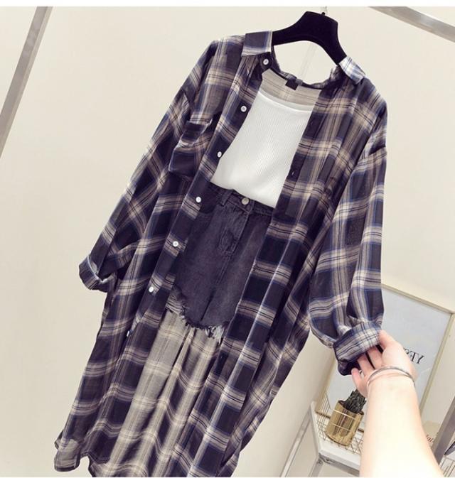 ブラウス レディース 春夏 ロング丈 チェック柄 トップス 着やせ 無地 上品