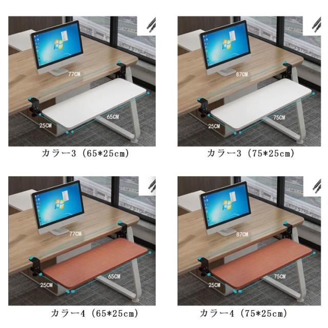 全5色・3サイズ・クランプ式!キーボードスライダー pcデスク 収納 後付け マウス キーボード キーボードトレイ 幅75cm キーボード台 アームレスト スライド式 幅65cm キーボードテーブル 幅52cm フルキーボード デスク設置 デスク 拡張 高さ調整可能 クランプ