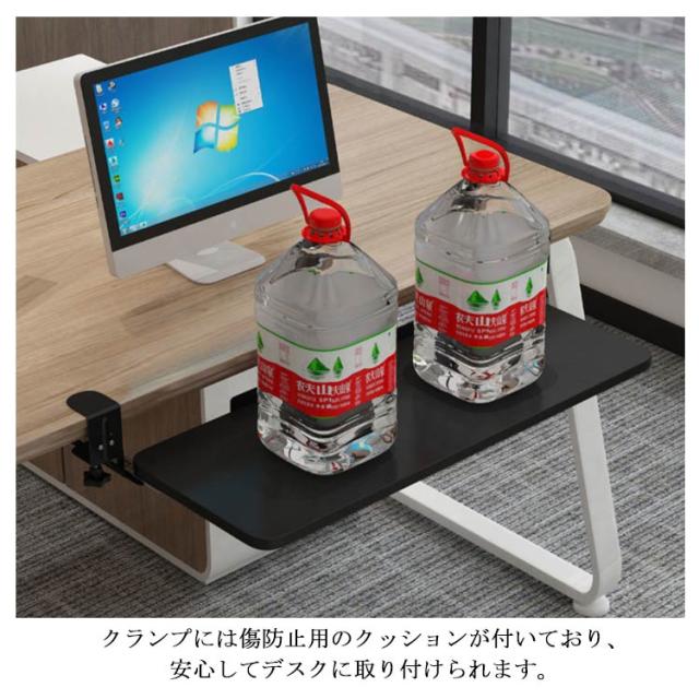 | 全5色・3サイズ・クランプ式キーボードスライダー! お手持ちのデスクに簡単に後付けできるキーボードスライダーです。 キーボードやマウスを置いていたスペースを別の作業に使えるので、効率がアップします。 スライダーはゆったり設計なので、フルキーボードとマウスを載せても余裕があります。 キーボードとマウスを載せた状態でも、たわまずスムーズに出し入れできます。 タイピング操作を行っても、ぐらつきません。 従来品は、設置にネジが必要でデスクが傷つき、一度設置してしまうと移動が困難でした。 本製品なら、クランプで簡単設置! 取り外しや位置の移動も、気軽にできます。 クランプを緩めれば、スライドさせて簡単に横移動できます。 クランプには傷防止用のクッションが付いており、安心してデスクに取り付けられます。 キーボード・マウス操作を身体の近い位置で行うことができ、姿勢が前のめりになりにくいのも特長。 背筋が自然に伸び、正しい姿勢でパソコン作業できます。 スライダーを付けることで、画面との間に適度な距離ができるので寄りかかったりせず正しい姿勢で作業できます。 デスク上も広くなり、一石二鳥! | |