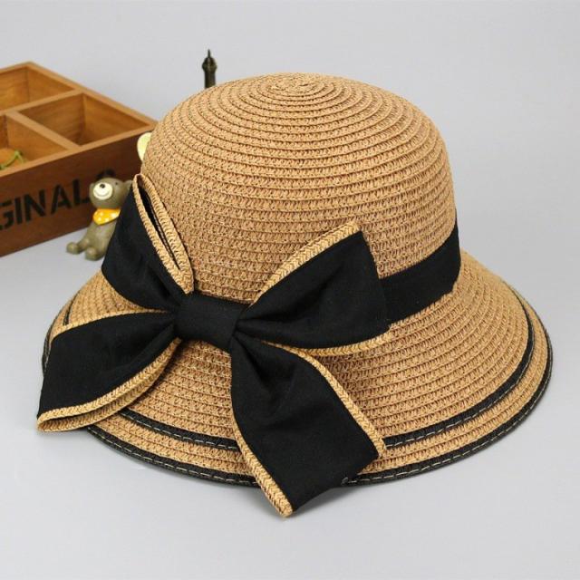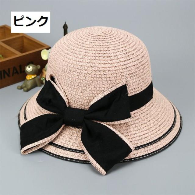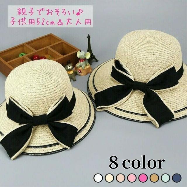親子ペアルック 麦わら帽子 ストローハット キッズ レディース リボン ゴム紐付き カラバリ豊富 おしゃれ 上品 かわいい 女の子 お揃い リンクコー