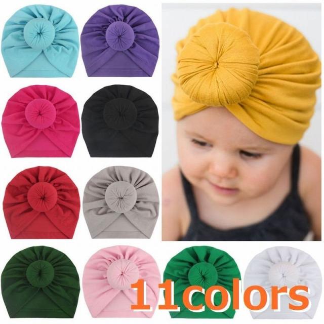 帽子 ベビー 赤ちゃん 男の子 女の子 子供用 キャップ ヘアアクセサリー 単色 無地 シンプル ポンポン かわいい おしゃれ ターバン風 カラバリ豊