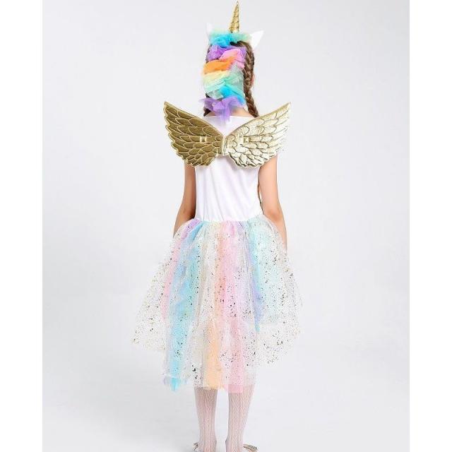 コスプレ コスプレ衣装 コスチューム キッズ 女の子 ワンピース 角 はね 3点セット ユニコーン 羽 羽根 翅 翼 カチューシャ 髪飾り リボン カ