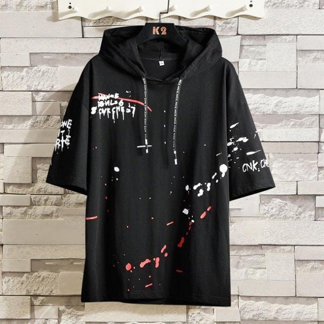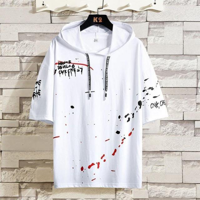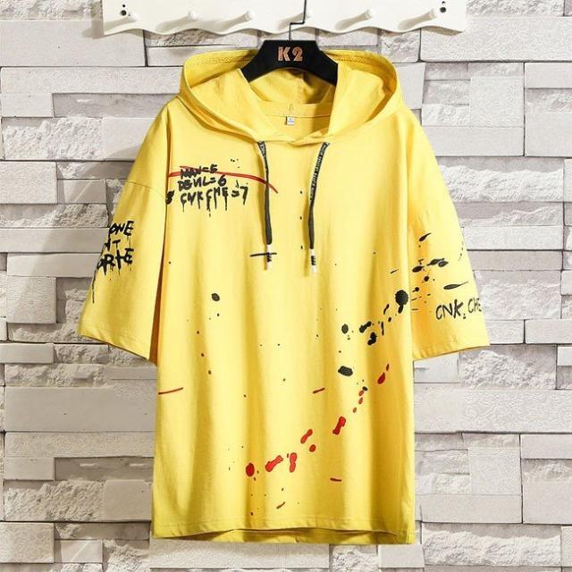 新作 Tシャツ メンズ フード付き コットン 半袖Tシャツ トップス 夏物 春物 フード付きTシャツ 半袖 人気 新品 メンズファッション
