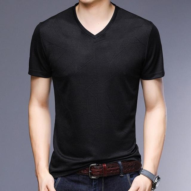 半袖Tシャツ メンズ ロングTシャツ Vネックトップス ジャカードTシャツ カットソー おしゃれ