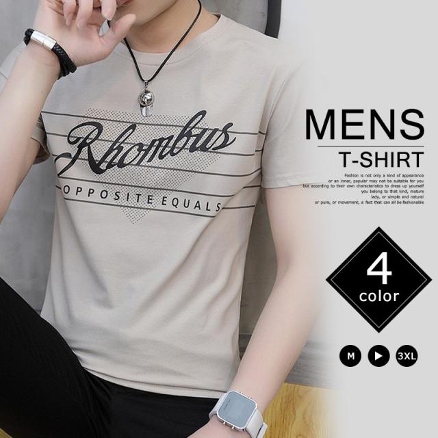 半袖Tシャツ メンズ ロングTシャツ プリントTシャツ クルーネックトップス 文字ロゴ おしゃれ