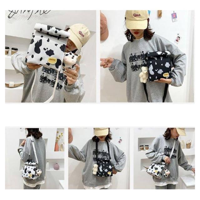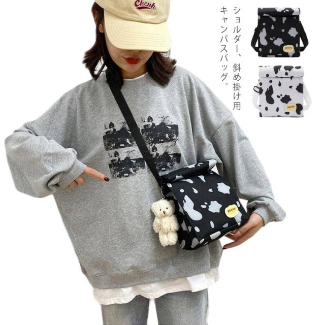 ショルダーバッグ レディース 牛柄 キャンバス 斜めがけ 大人 きれいめ 小さめ 2way ポシェット ポーチ カバン 大容量 アウトドア ミニバッグ ハンドバッグ スマホ入れ 軽量 収納 小物入れ コンパクト かわいい おしゃれ 通勤 通学
