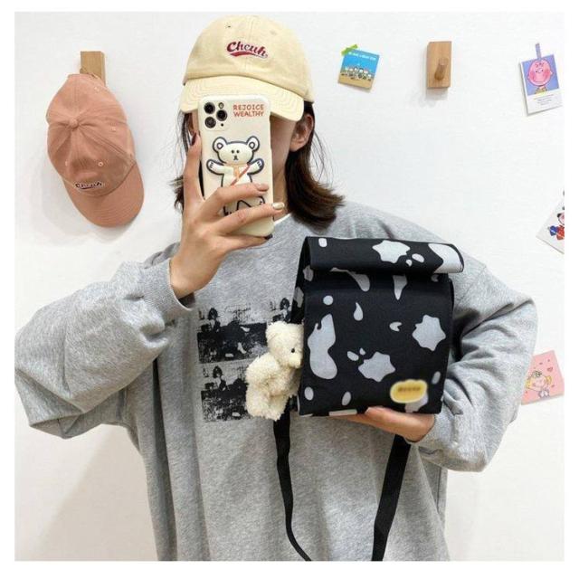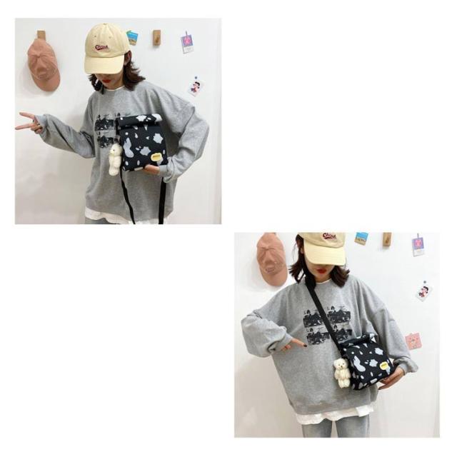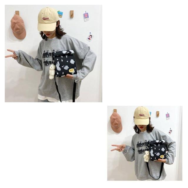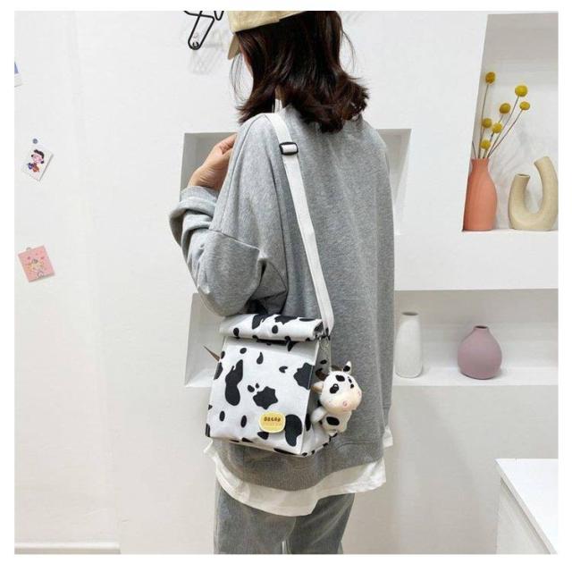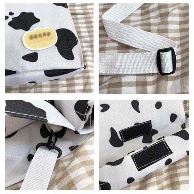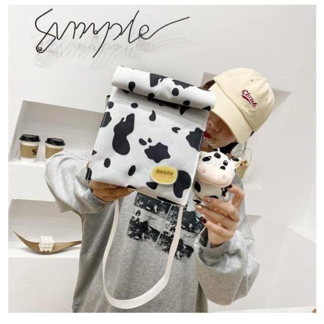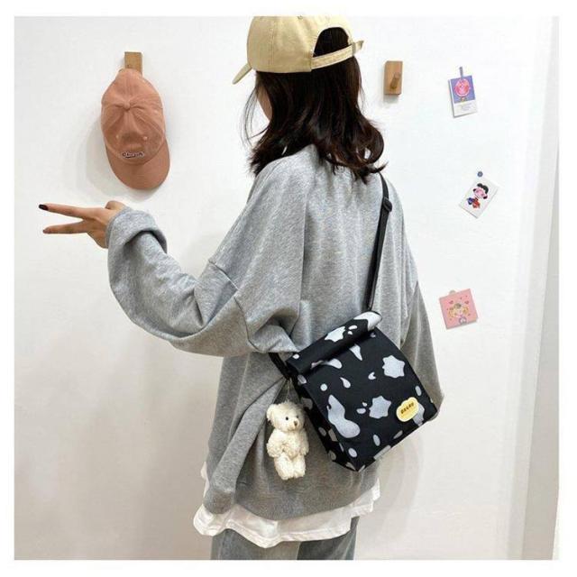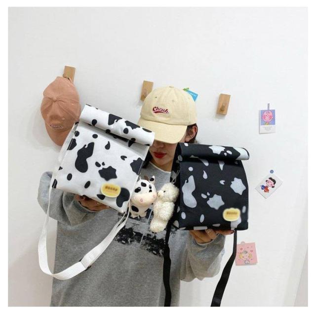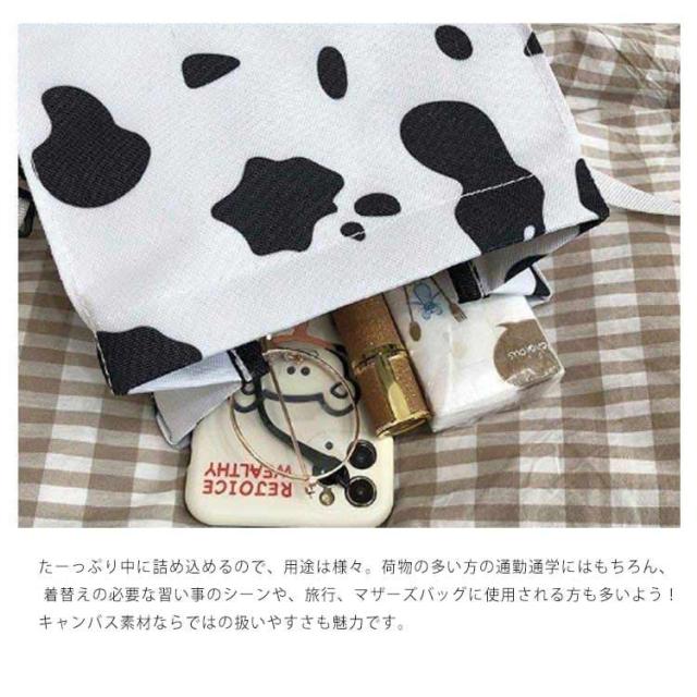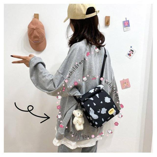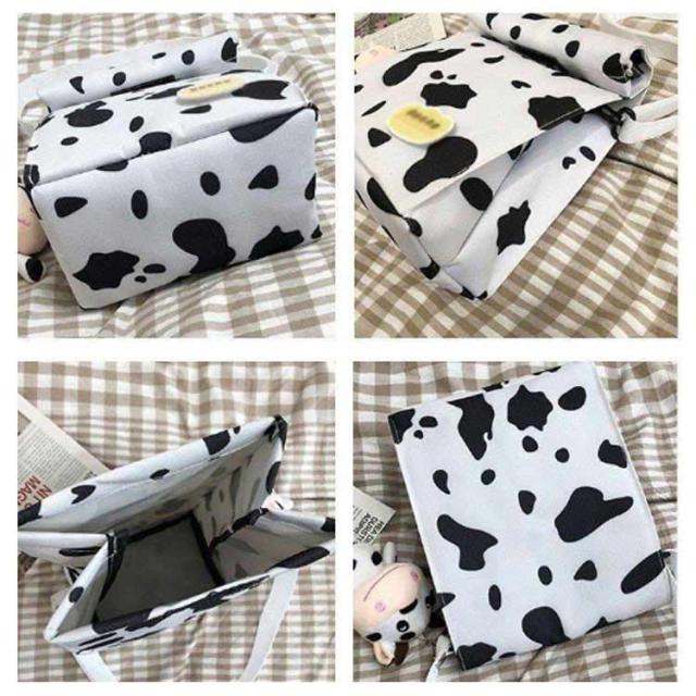 | ショルダー、斜め掛け用キャンバスバッグ。 女の子が運ぶのに適した、女の子らしい心を持つ愛らしい漫画の牛乳牛のパターン。正方形にデザインされているので、この収納バッグはより多くのものを収納できます。 ウォッシュをかけたキャンバス素材はくったりと柔く、肩にかけた際も馴染みやすくストレスフリーな持ち生地&さらに、どこか褪せたような独特のおいろで、おしゃれな雰囲気を漂わせます。 たーっぷり中に詰め込めるので、用途は様々。荷物の多い方の通勤通学にはもちろん、 着替えの必要な習い事のシーンや、旅行、マザーズバッグに使用される方も多いよう!キャンバス素材ならではの扱いやすさも魅力です。 | |