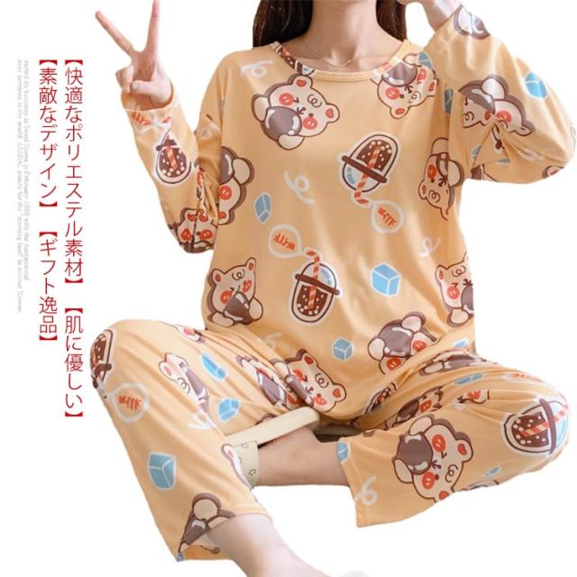 送料無料 パジャマ レディース くま柄 ルームウェア 可愛い 夏 秋 薄手 長袖 上下セット 大きいサイズ かわいい 部屋着 ナイトウェア プレゼント ギフト
