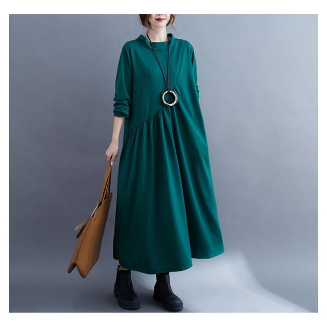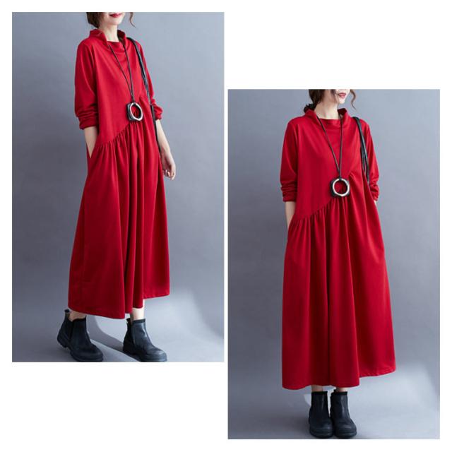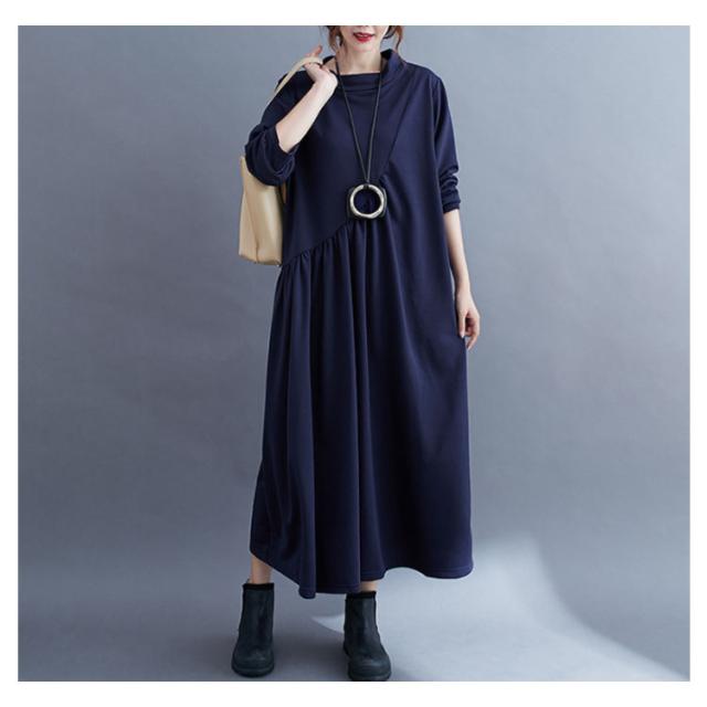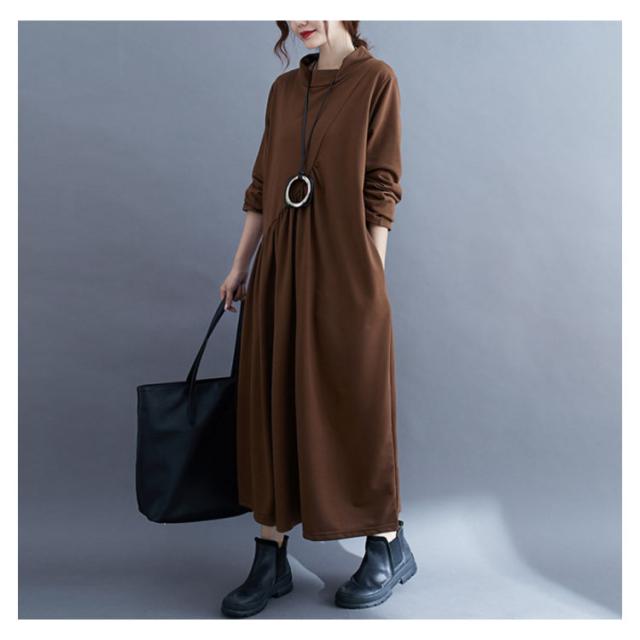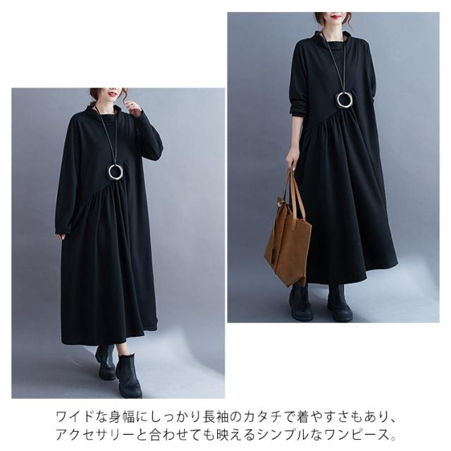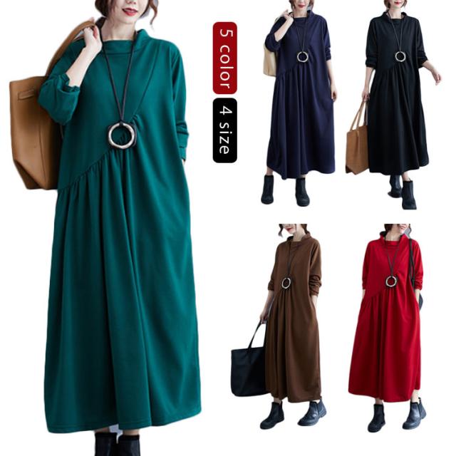 ワンピース ロング ロングワンピース シンプルワンピース シンプル マキシワンピース ボートネック 無地 レディース 長袖 チュニック 体型カバー 春秋 秋冬 30代 40代 50代 60代 お呼ばれ 大人 ゆったり 大きいサイズ