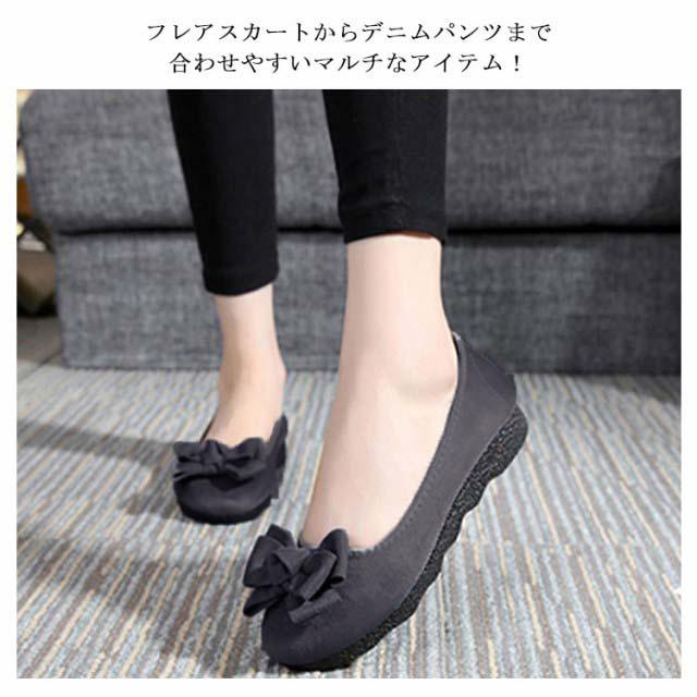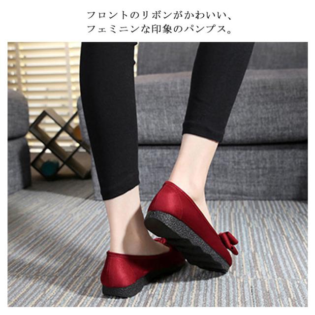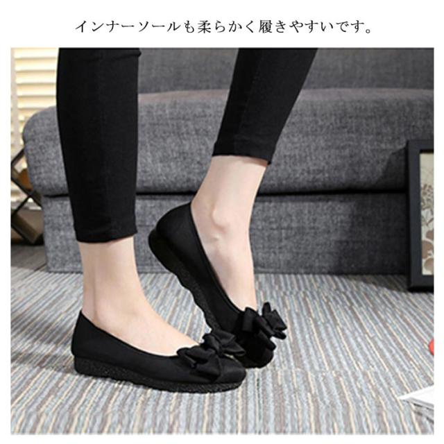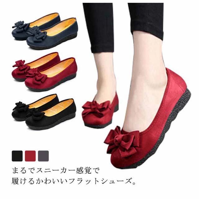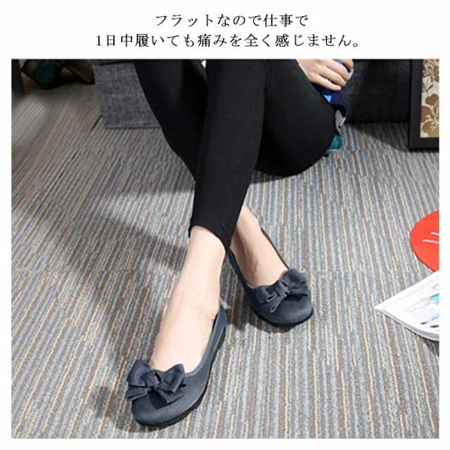 パンプス フラットシューズ バレエパンプス フラット リボン ぺたんこ レディース 靴 バレエシューズ 痛くない ローヒール 低反発 コンフォート ボリュームリボン 通勤 仕事 立ち仕事 旅行 おしゃれ かわいい