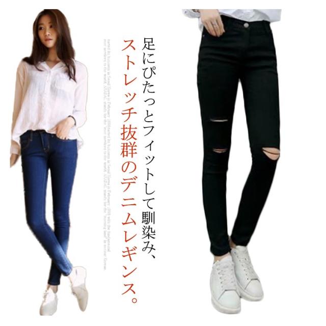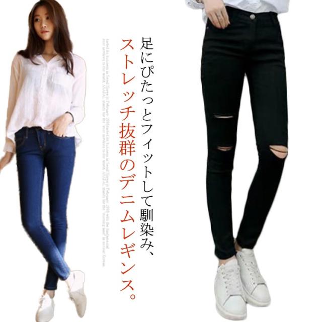 (送料無料)デニム レギンス ダメージデニム ジーンズ レディース レギパン レギンスパンツ ボトムス デニムパンツ 9分丈 ダメージ加工 無地 伸縮性 ストレッチ フィット タイト ストレッチパンツ クラッシュデニム 体型カバー 美脚 美尻 カジュアル きれいめ フェミニン