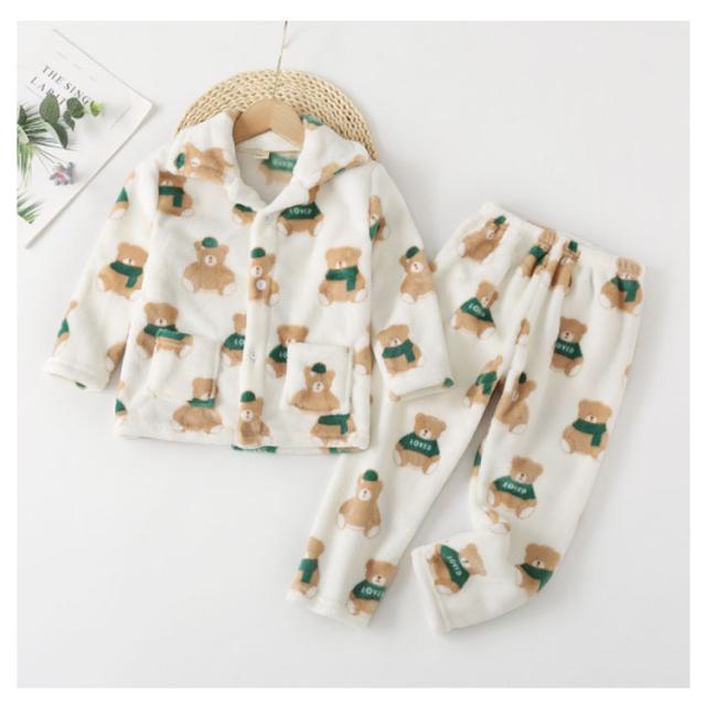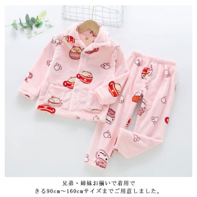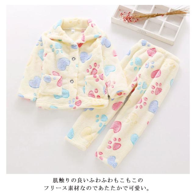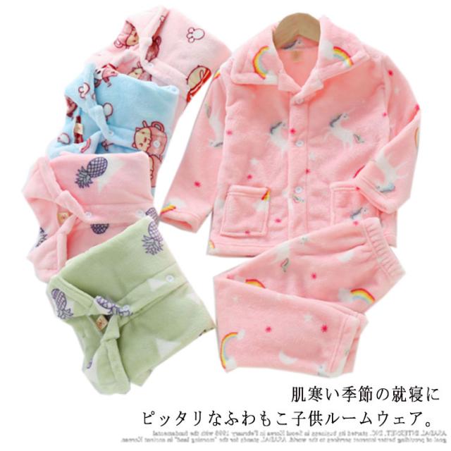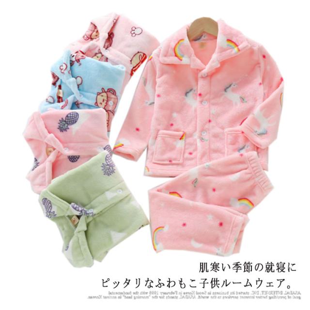 キッズ パジャマ もこもこ ルームウェア 子供パジャマ 女の子 男の子 あったか 上下セット 秋 冬 おしゃれ 可愛い 長袖 ロングパンツ 部屋着 ふわふわ 開襟 ジュニア 防寒 子供服 ポケット パジャマ ナイトウェア 寝間着 かわいい ユニセックス 2点セット 軽量