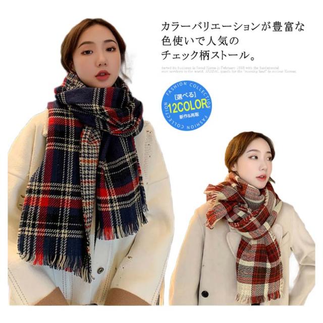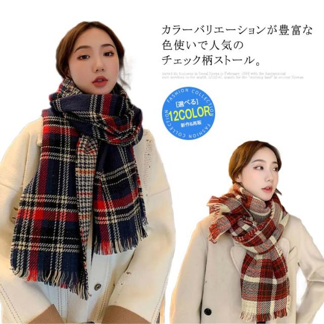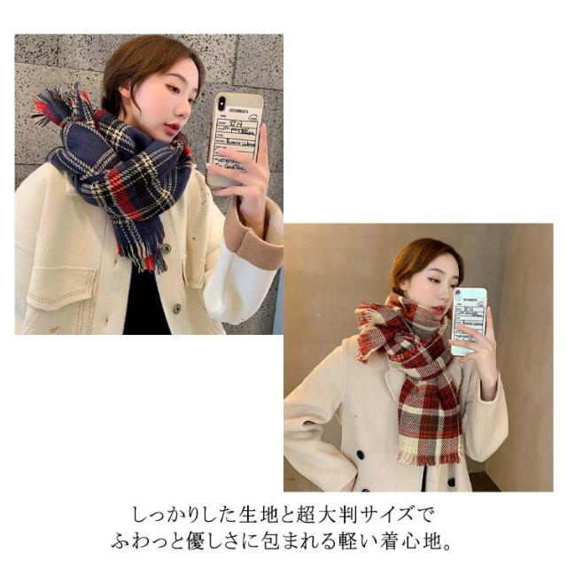 大判ストール マフラー レディース 厚手 秋冬 防寒 チェック柄 可愛い ひざ掛け リバーシブル 肌に優しい なめらか 柔らか 暖かい ネックウォーマー ギフト プレゼント クリスマス 贈り物 送料無料