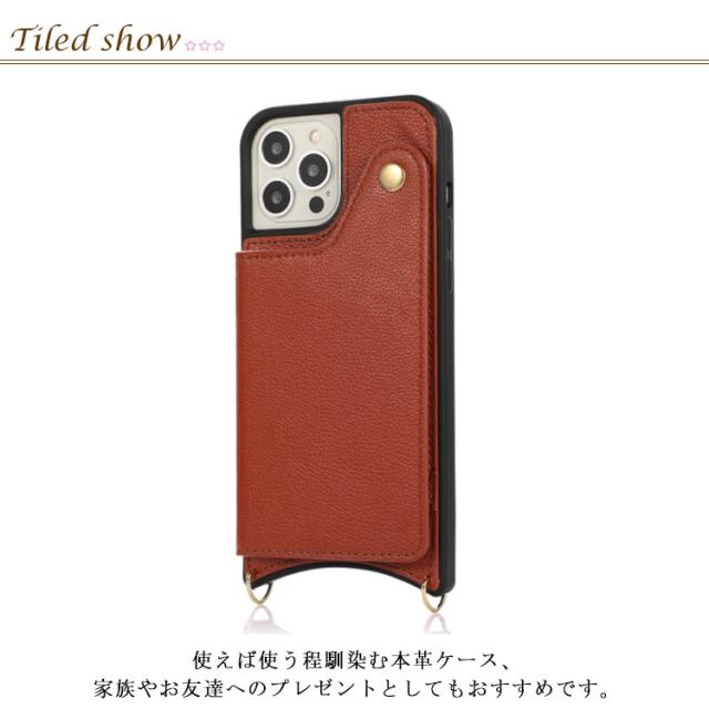 | 斜め掛け・肩掛け・首掛けできる背面手帳型ケース。 ショルダーストラップ付き、両手がフリー。外出時いつでも手軽にスマホが使えます。ストラップの長さが調整可能なので、首掛けにしたり、肩掛けにしたり、シーンに合わせて使いやすい。 カードスロット付きで、ICカードなど収納するのにとても便利。これひとつでお出かけすることも◎ボタン付きでカードの落下防止に一役!大切なカードを紛失から守ります。 女性には嬉しいミラー付き、いつも身だしなみチェックできます。 使えば使う程馴染む本革ケース、家族やお友達へのプレゼントとしてもおすすめです。 | |