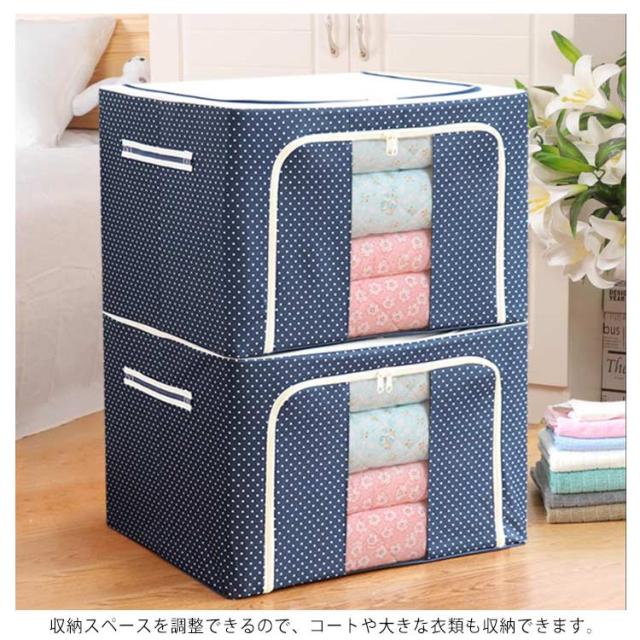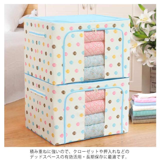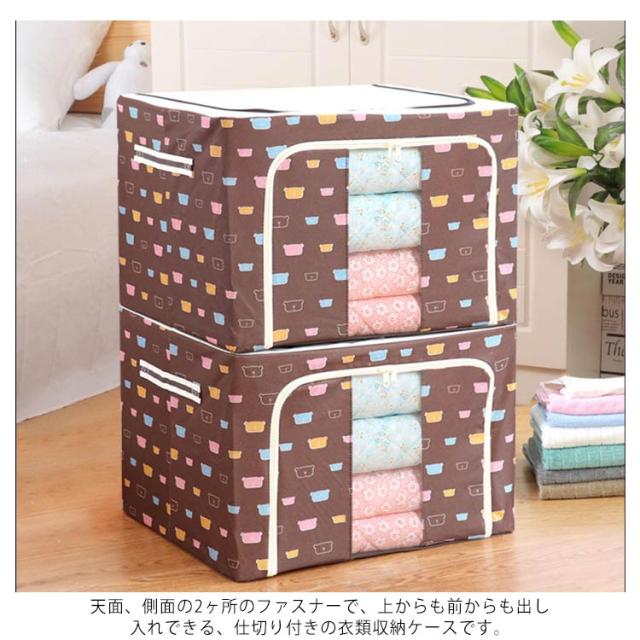 | 衣服だけでなく、枕や布団などの寝具の収納にも使えて便利です。 お部屋が片付いて、気持ちもスッキリ。お部屋を心地よいリラックス空間にしてくれます♪ 天面、側面の2ヶ所のファスナーで、上からも前からも出し入れできる、仕切り付きの衣類収納ケースです。 収納スペースを調整できるので、コートや大きな衣類も収納できます。 中身が見える透明窓付き。持ち運びに便利な持ち手付で、収納後の移動もラクラク。 積み重ねに強いので、クローゼットや押入れなどのデッドスペースの有効活用・長期保存に最適です。 使わないときは、折り畳んでおけば場所をとらずコンパクトに収納できます。 | |