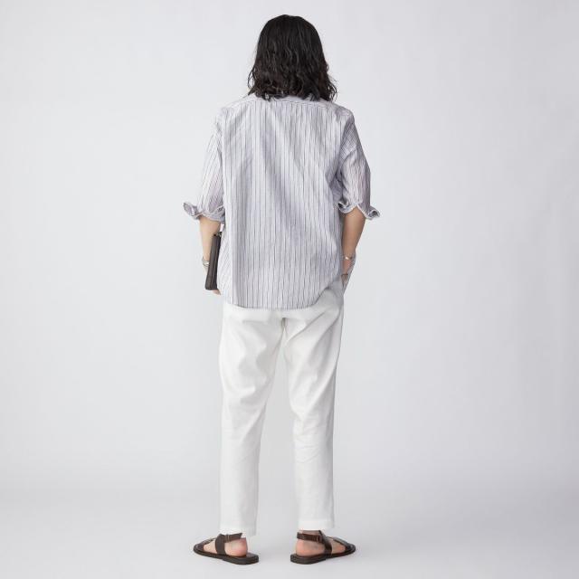 リネン独特のシワ感やリラックスした雰囲気をはじめ、表情豊かなこちらのシャツは、カットソーと合わせた羽織物としてもおすすめです。