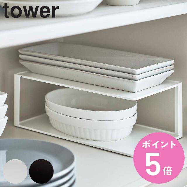 tower 山崎実業 ディッシュラック 長皿収納ラック 2段 滑り止め付き ( タワー 山崎実業 食器スタンド 食器立て 皿立て 食器棚収納 食器収納 食器ラック キッチン 収納 食器 皿 皿収納 食器整理 皿整理 積み重ね tower 山崎実業 キッチン タワー)