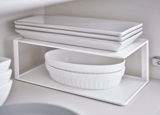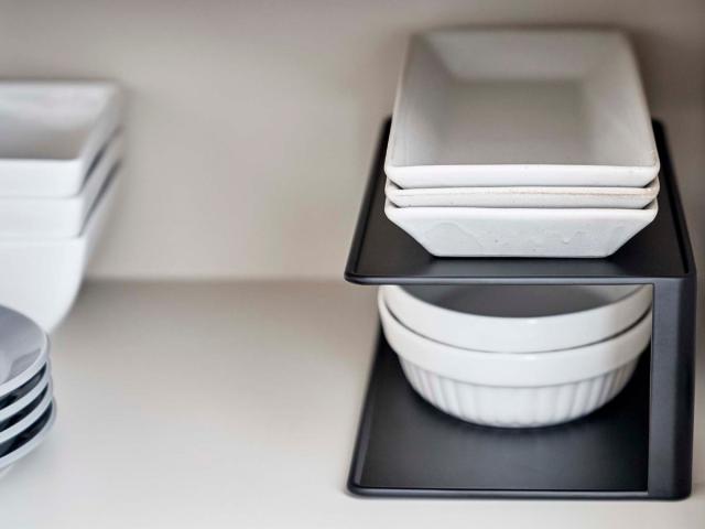 食器棚の余りがちなデッドスペースをこのラックを置くだけで簡単に2段収納にでき、収納力UP。棚の高さを活かして、食器類を上手に収納してくれます。