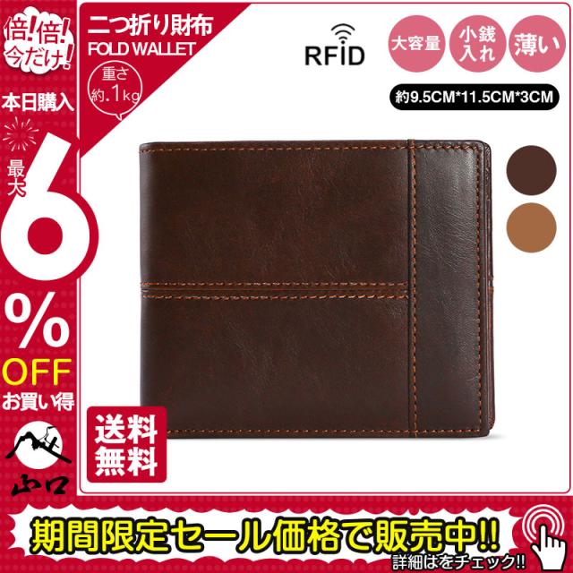 財布 メンズ 二つ折り財布 RFIDスキミングガード 大容量 コンパクト 牛革 本革 薄い 軽い カード入れ 男性 紳士用