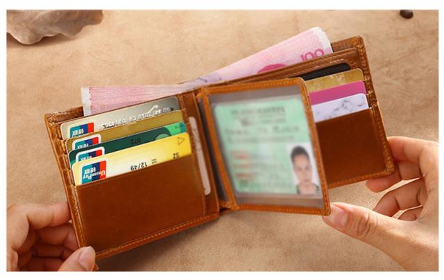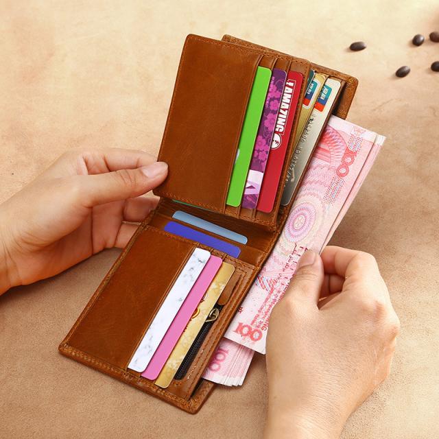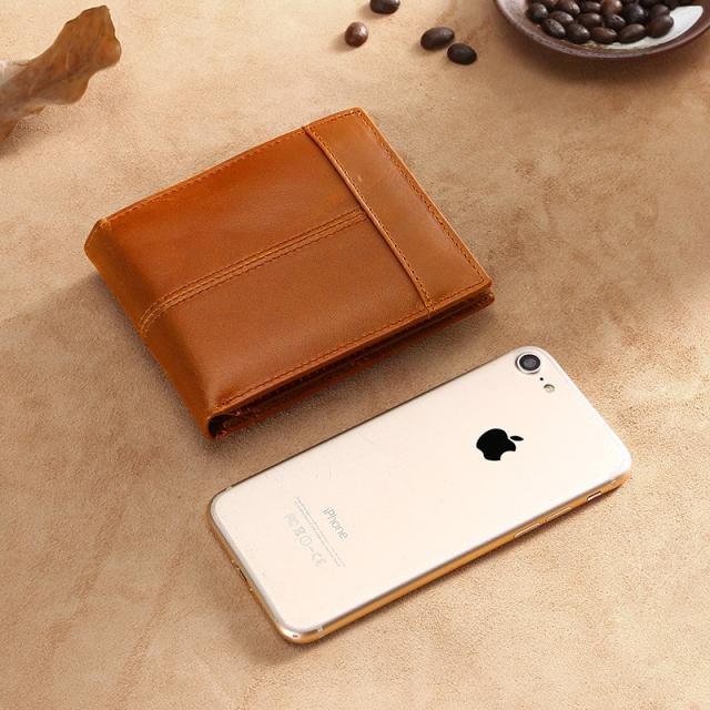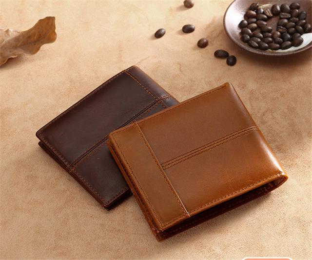 RFIDスキミングガード素材の本革仕立てメンズ用二つ折り財布