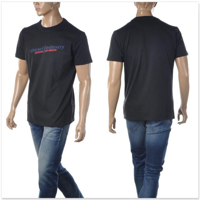 ディーゼル DIESEL Tシャツ メンズ 半袖 カットソー クルーネック ブラック 黒 ロゴ プリント コットン T-DIEGOR-IND A03741-0PITA カジュアル 人気 ブランド おしゃれ