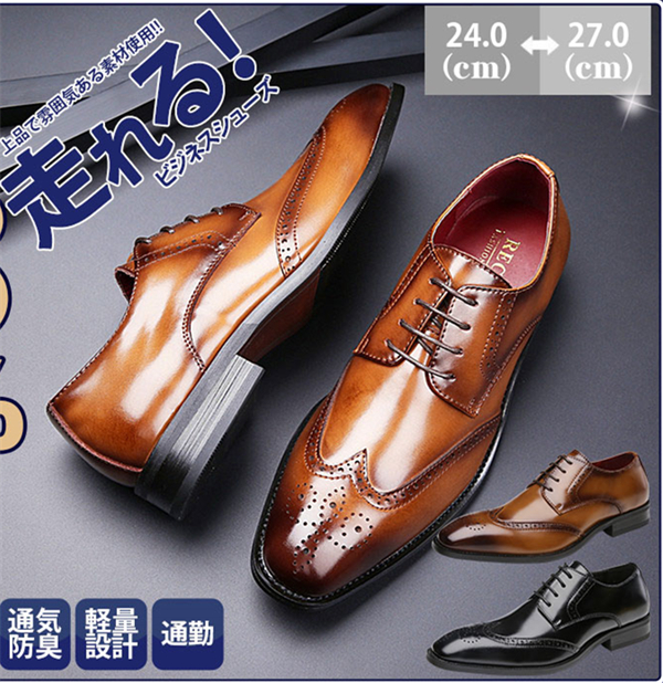 本日の激短SALE 爆売中 ビジネスシューズ メンズ 紳士靴 本革 革 革靴 走れる 軽量 防滑ソール 通気防臭 ウイングチップ 通勤 柔らかい グリップ フォーマル 仕事