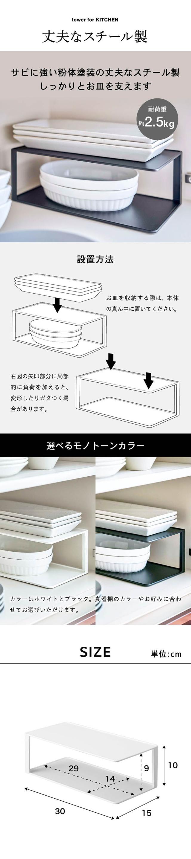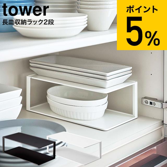 tower 山崎実業 タワー 長皿収納ラック2段 ホワイト ブラック 5641 5642 送料無料 食器収納 食器収納ラック お皿 食器 和皿 カレー皿 グラタン皿 食器棚 棚 シンク下 キッチン 隙間収納 キッチン収納 ディッシュスタンド タワーシリーズプレゼント