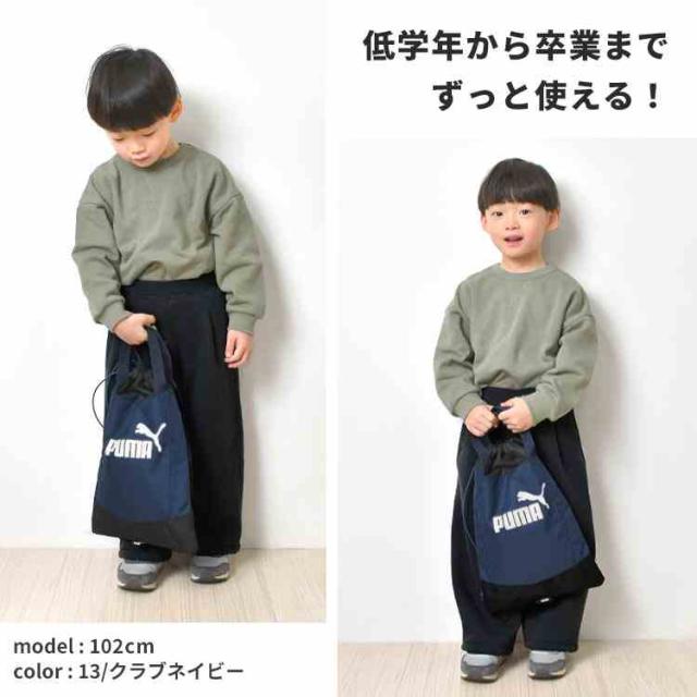 新入学・新学期に!スポーツブランド『PUMA(プーマ)』のナップサック。 男の子も女の子も使いやすいシンプルなロゴデザイン。低学年から卒業までずっと使えます。