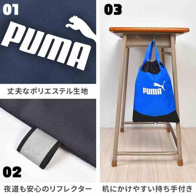 シューズバッグ PUMA プーマ 小学生 男の子 上履き入れ シューズケース 上靴入れ 巾着袋 反射材付き キッズ ジュニア 中学生 子供 スポーツ ブランド 黒 ブラック 青 ブルー 紺 ネイビー かっこいい 通学 小学校 新一年生 新学期 入学 入学準備 お祝い プレゼント ギフト