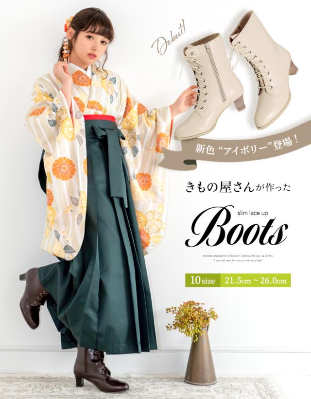 袴ブーツ 卒業式 袴 ブーツ レディース 大学 ヒール 白 アイボリー 黒 茶色 女性 ミドルブーツ 編み上げ(rg)